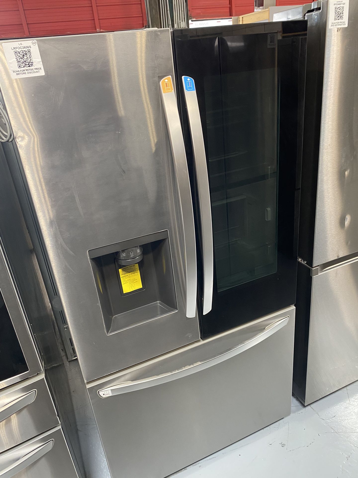 Open Box LG Stainless Steel 26 Cu. Ft. Smart InstaView Counter Depth French Door Refrigerator Model #LRFOC2606S Dimensions: 35.75”W 31.63”D 70.25”H Knock twice on the InstaView window to see more of your favorites without opening the door. Dual ice makers. Door Cooling+. ThinQ Care. SpacePlus Ice System. Cool Guard Interior. Includes a 12-month warranty Financing Available Delivery and installation available Contact us with any questions or to stop by to see this unit and others. Open Monday - Saturday 10am - 6pm Our inventory changes daily. Message us for availability.