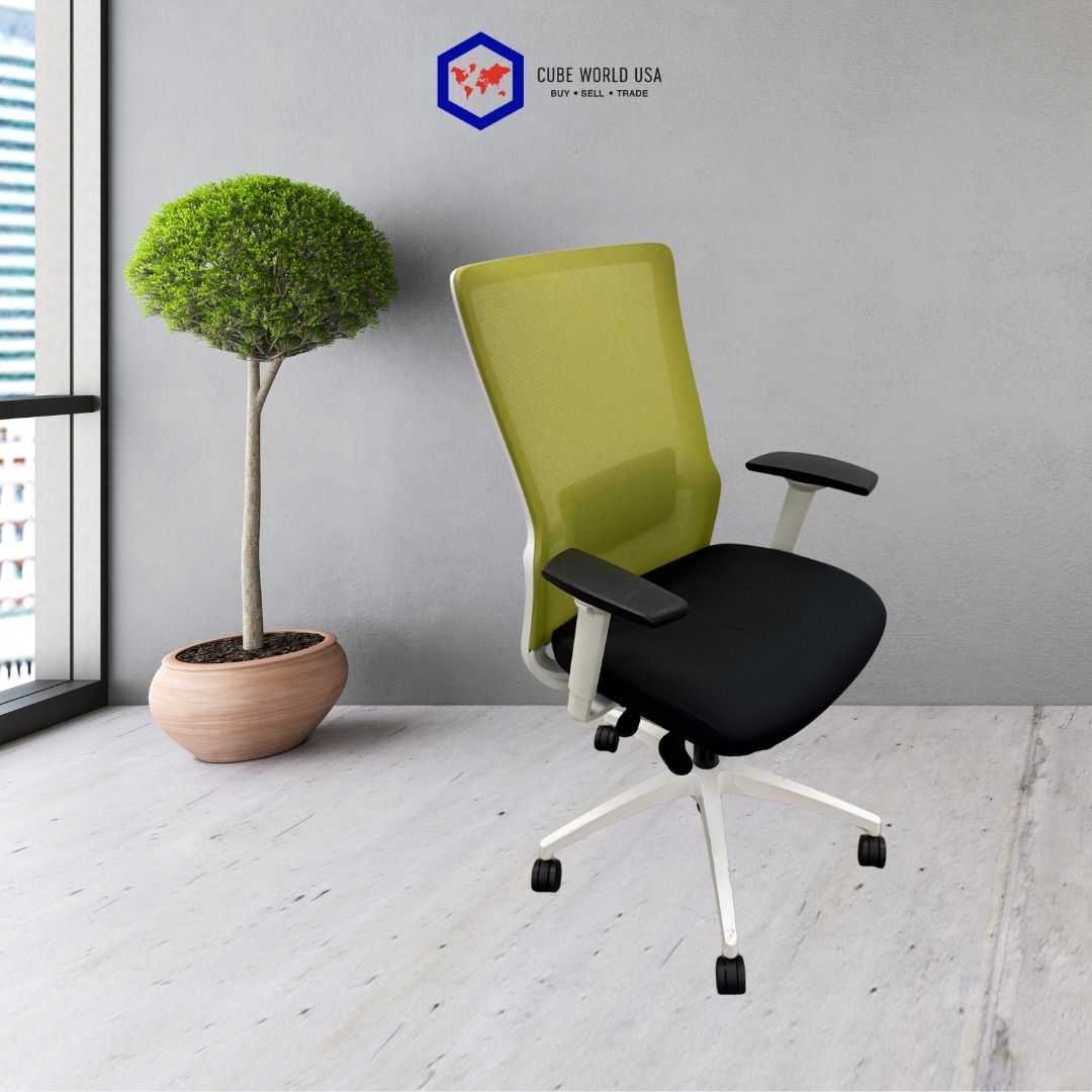 SitOnIt Novo task chairs with green and black seats, in good condition and built for everyday office comfort. Equipped with adjustable arms, lumbar support, tilt adjustment, and a pneumatic height-adjustment cylinder for flexible, ergonomic seating. Item # 72532