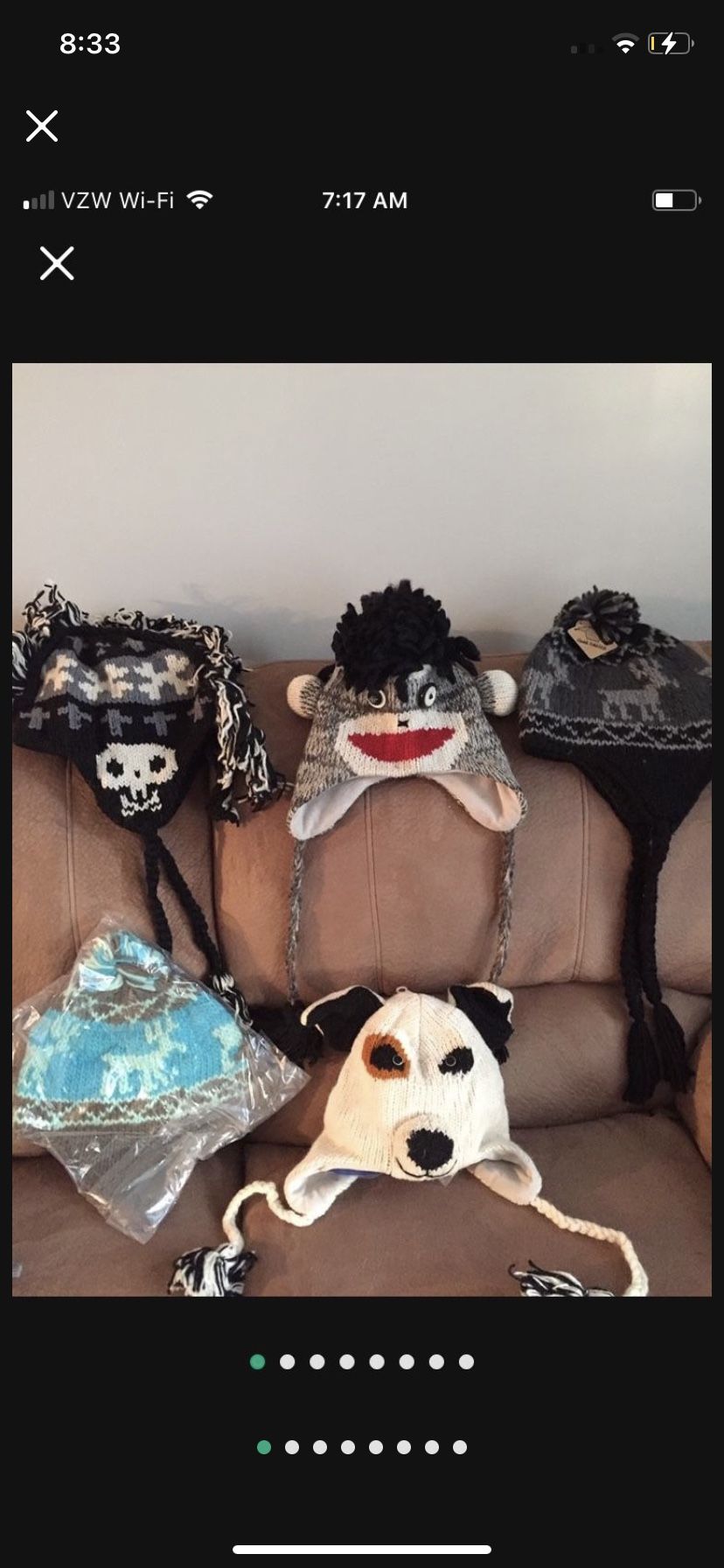 Unisex Children/Teen Winter Hat -Mohawk with skull and bones, knitted deers, sock monkey and doggie with different colored patch Covers Ears Brand new. Cover your ears and thick Pick up in east haven or hamden