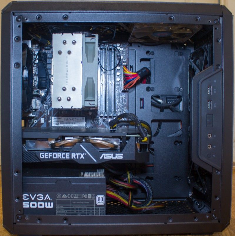 Entry to mid-range gaming pc. Works great and some parts are basically brand new. I/O shield is 3D printed since I didn't receive the original when I purchased the motherboard. I do have wifi antennas for it as well. Coolermaster Q300L mAtx case w/5 120mm fans (3 LED not rgb fans) Gigabyte B450 DS3H Wifi Motherboard AMD Ryzen 5 2600 6 core 12 thread CPU 16GB G.Skill Aegis 3000MT/s CL18 DDR4 (2x8GB) ASUS Nvidia GeForce RTX 2060 6GB Dual OC 128GB Patriot P300 M.2 NVMe SSD 512GB Patriot P220 SATA 3 SSD EVGA 500 W1 500w power supply Thermalright Assassin Spirit 120V2 CPU cooler Windows 11 pro