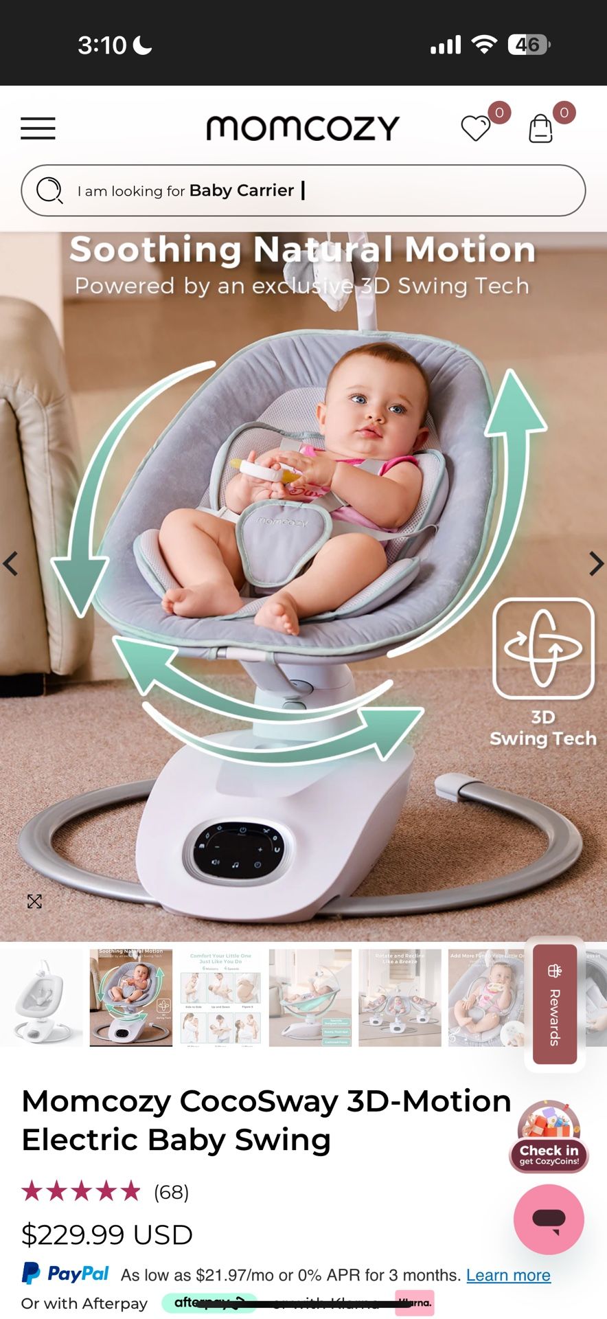 Momcozy Cocosway 3D- Motion Electric Baby Swing Use: New (My baby didn’t like the swing) Condition: New (smoke free home and pet free home) No stains, no issues with swing. Price is firm Pick up only