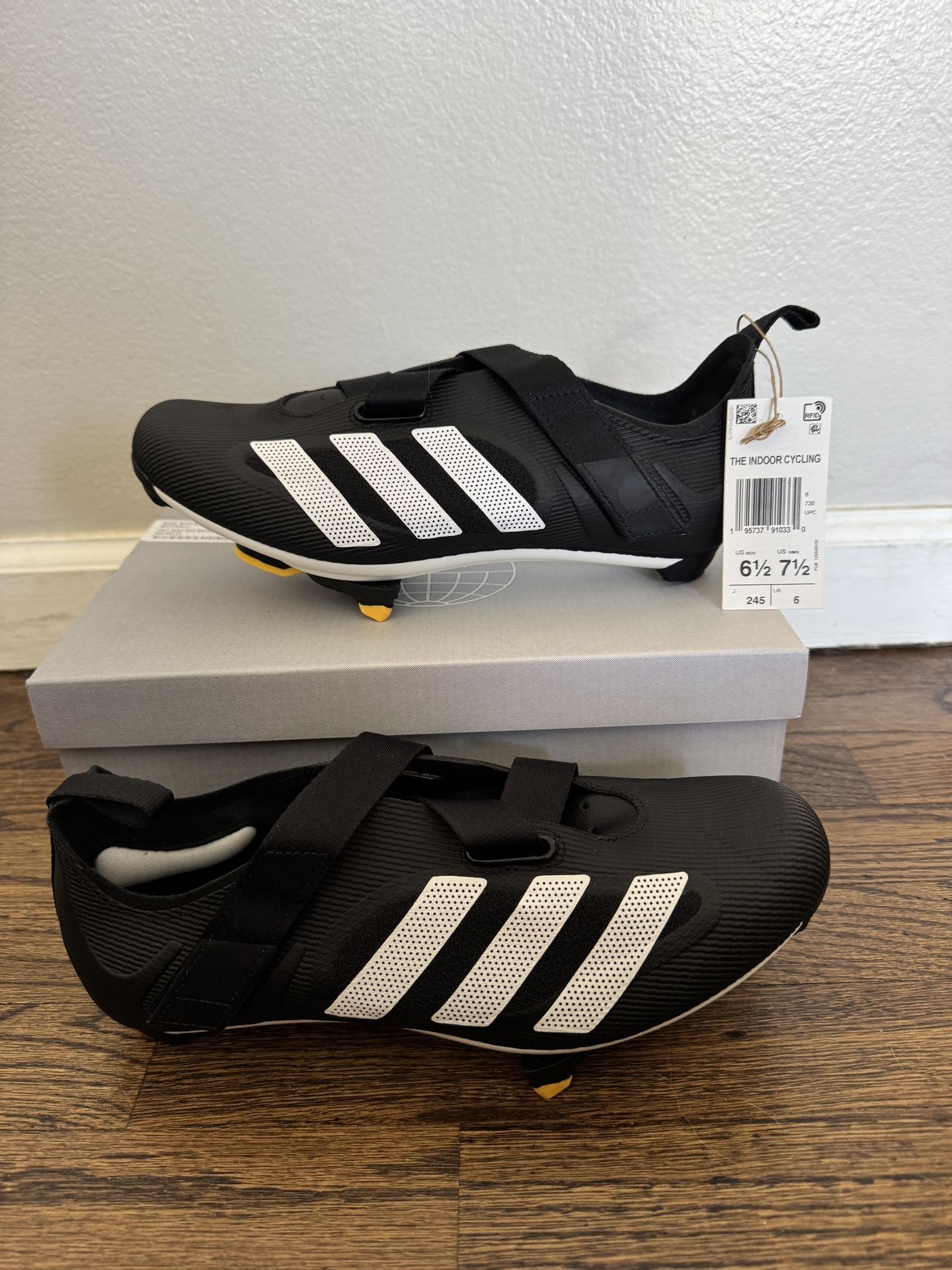 Adidas Black indoor cycling shoes Unisex Women 7 1/2 & Men 6 1/2 brand new, never worn, kept in the box.