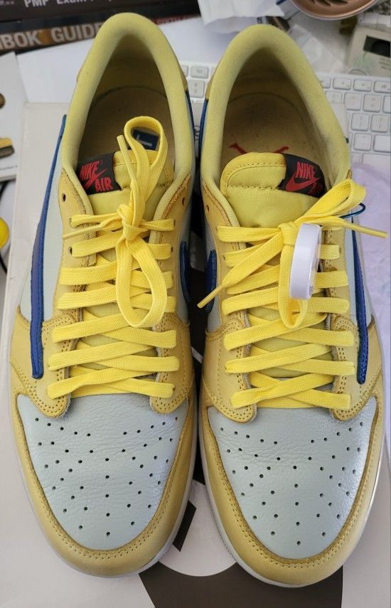 Jordan 1 Low Travis Scott Canary Size 13W = 11.5M Bought through ebay with their authenticity guarantee program and worn twice. Cash and local only- FIRM on price Won't respond to offers. Will meet at home depot in north hollywood.