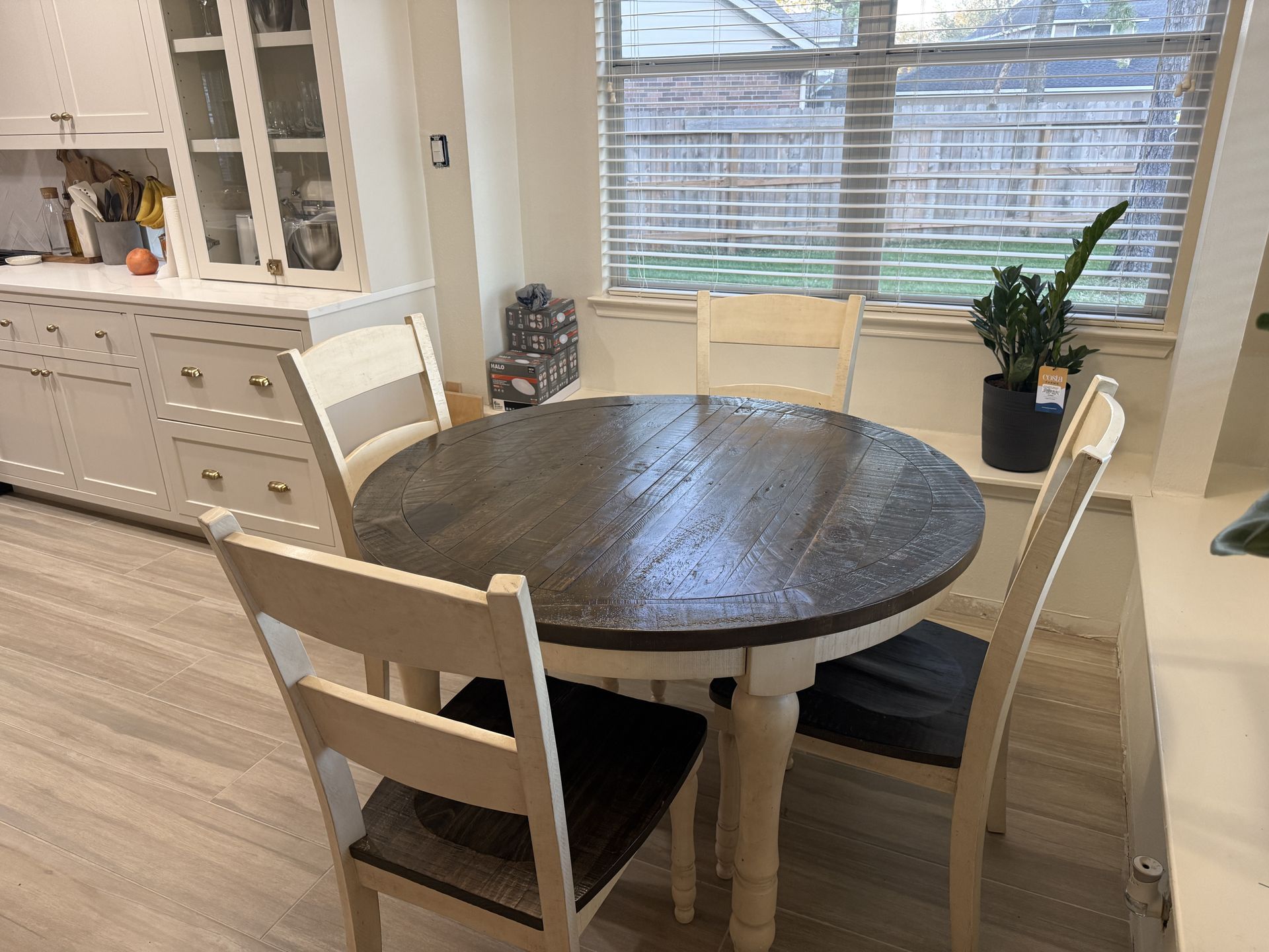 Please see pictures. We re-did our kitchen. Doesn’t go with our new set up. Great condition. Purchased at Star Furniture close to $1000 $350 or best offer. Thank you