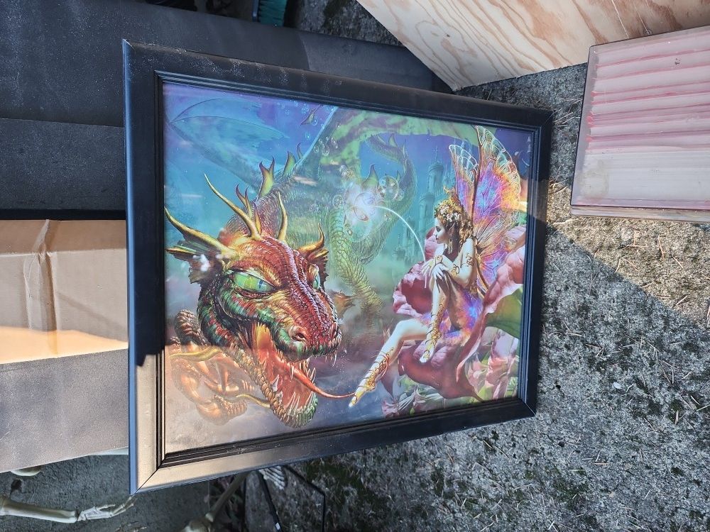 Fairy and dragon with frame and glass