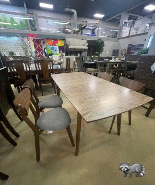 Alfredo Natural Walnut 5 Piece Dining Table Set Bench Options With İnterest Free Payment Options