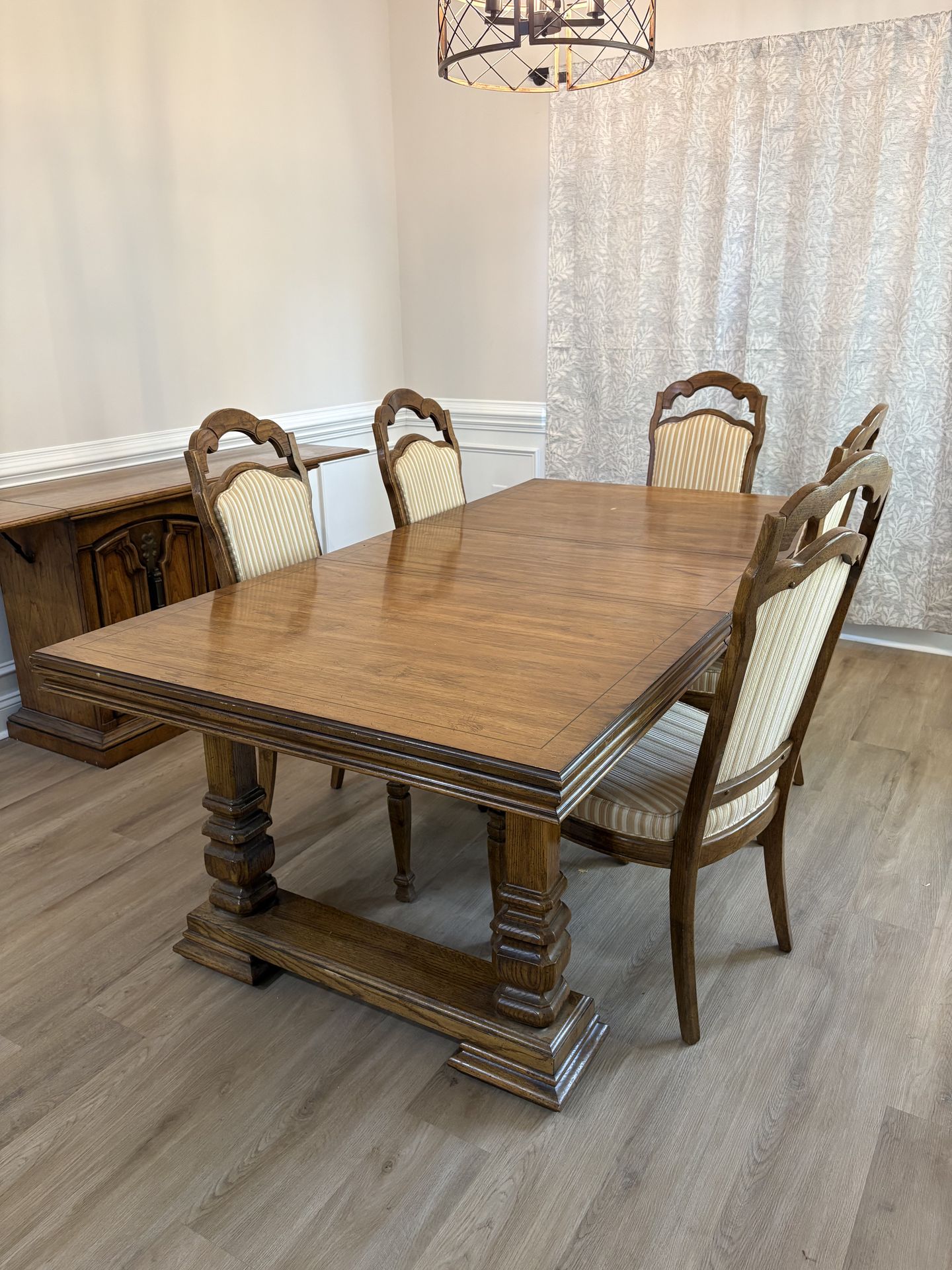8 ft Wooden Dining Table Set with Leaf + 6 Chairs (Excellent Condition)