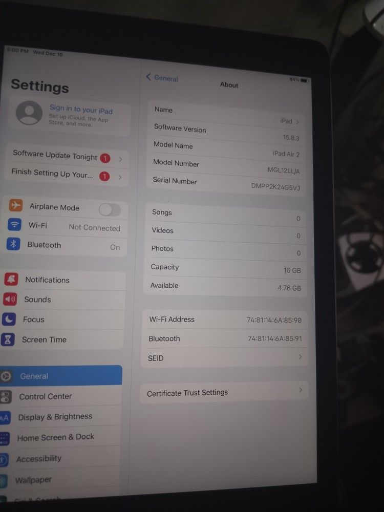 Selling my used but in excellent condition APPLE iPad Air 1 gen ,16 GB