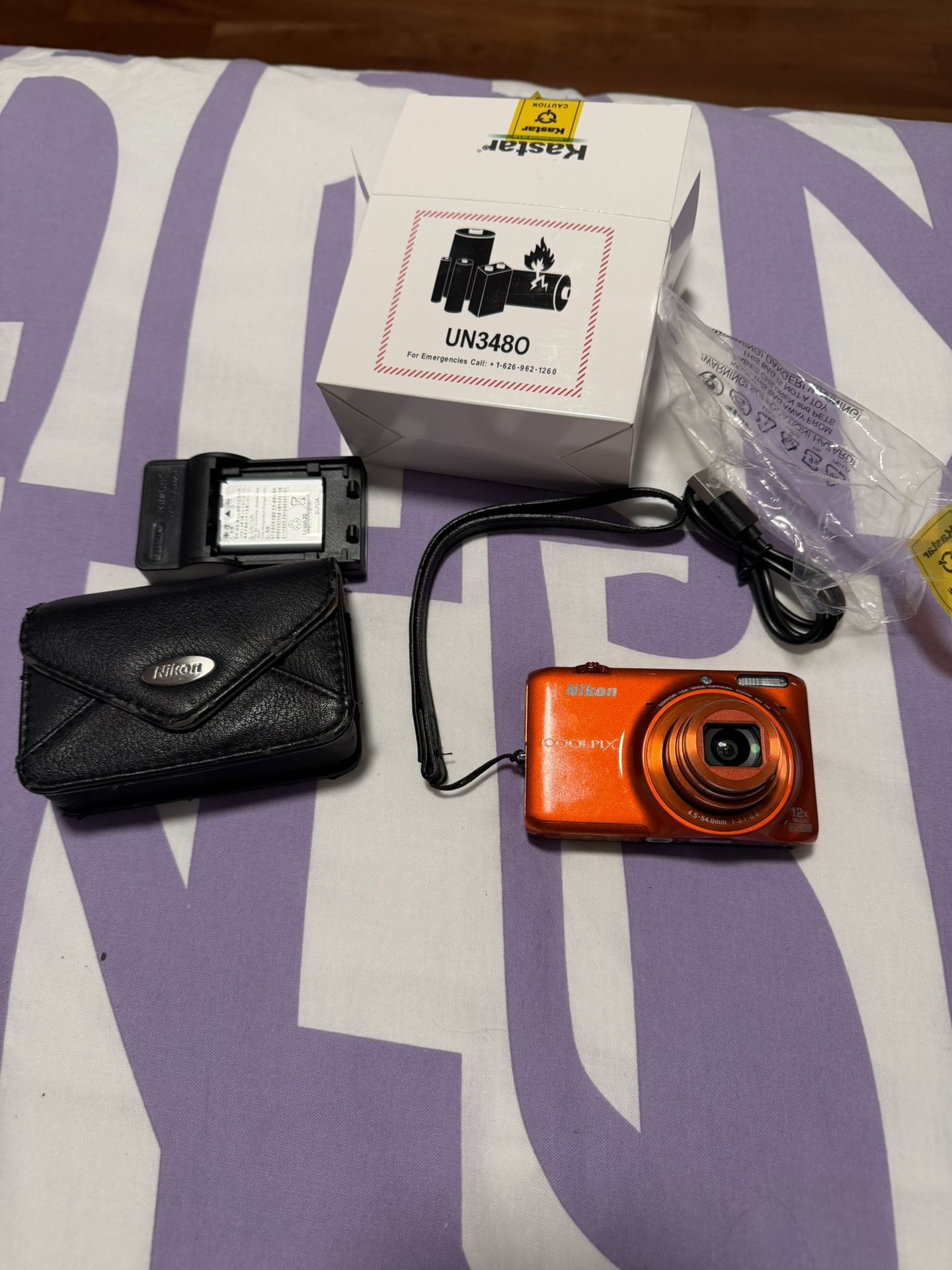 Nikon COOLPIX S6500 16.0MP OrangeDigital Camera 16MP 12X Zoom WiFi Work Well Come With New Charger And Batteries