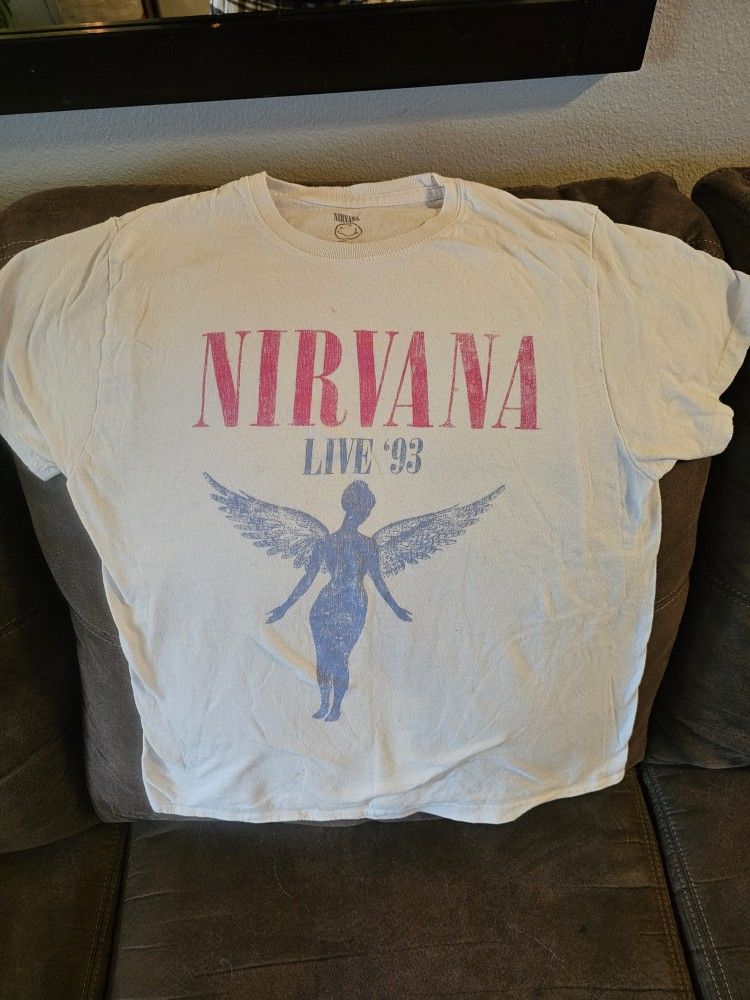 used nirvana and kiss shirt.. kiss is baggy says medium..