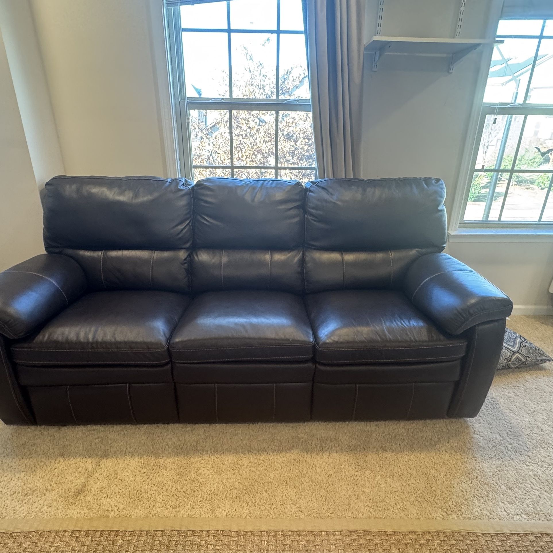 Leather Couch in relatively good condition with storage compartment at both ends ( slight rent as seen pictures) and charging port. Comes with reclining chair as seen in pictures. Only Zelle, Venmo or Cash on pick up. No cheque. Communicate only through Offer up not email or phone please First come first serve