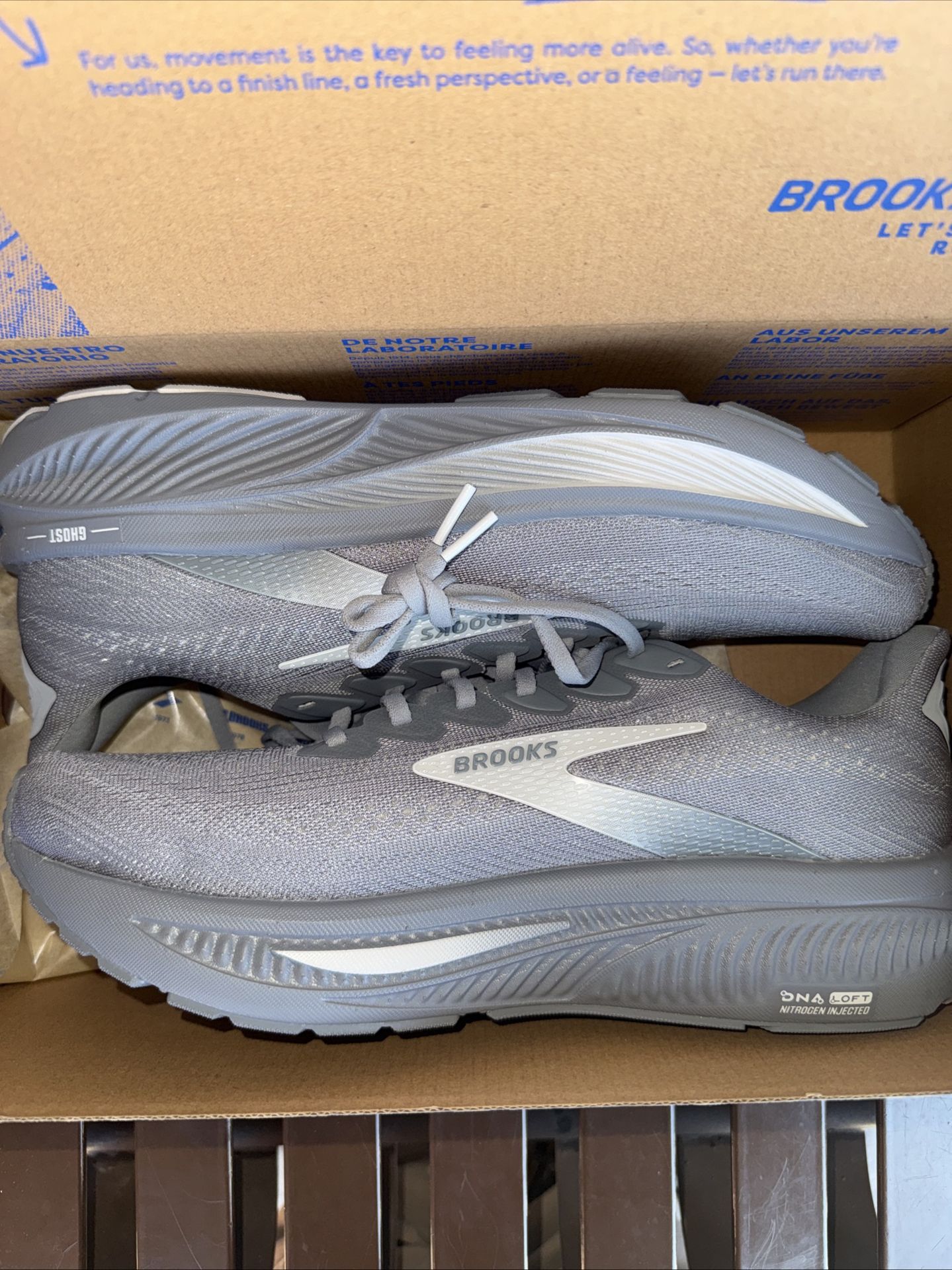 Brand new in box never worn retail price is $149.99+tax selling for $100 Brooks ghost 17 size 11.5 primer grey/ouster mushroom