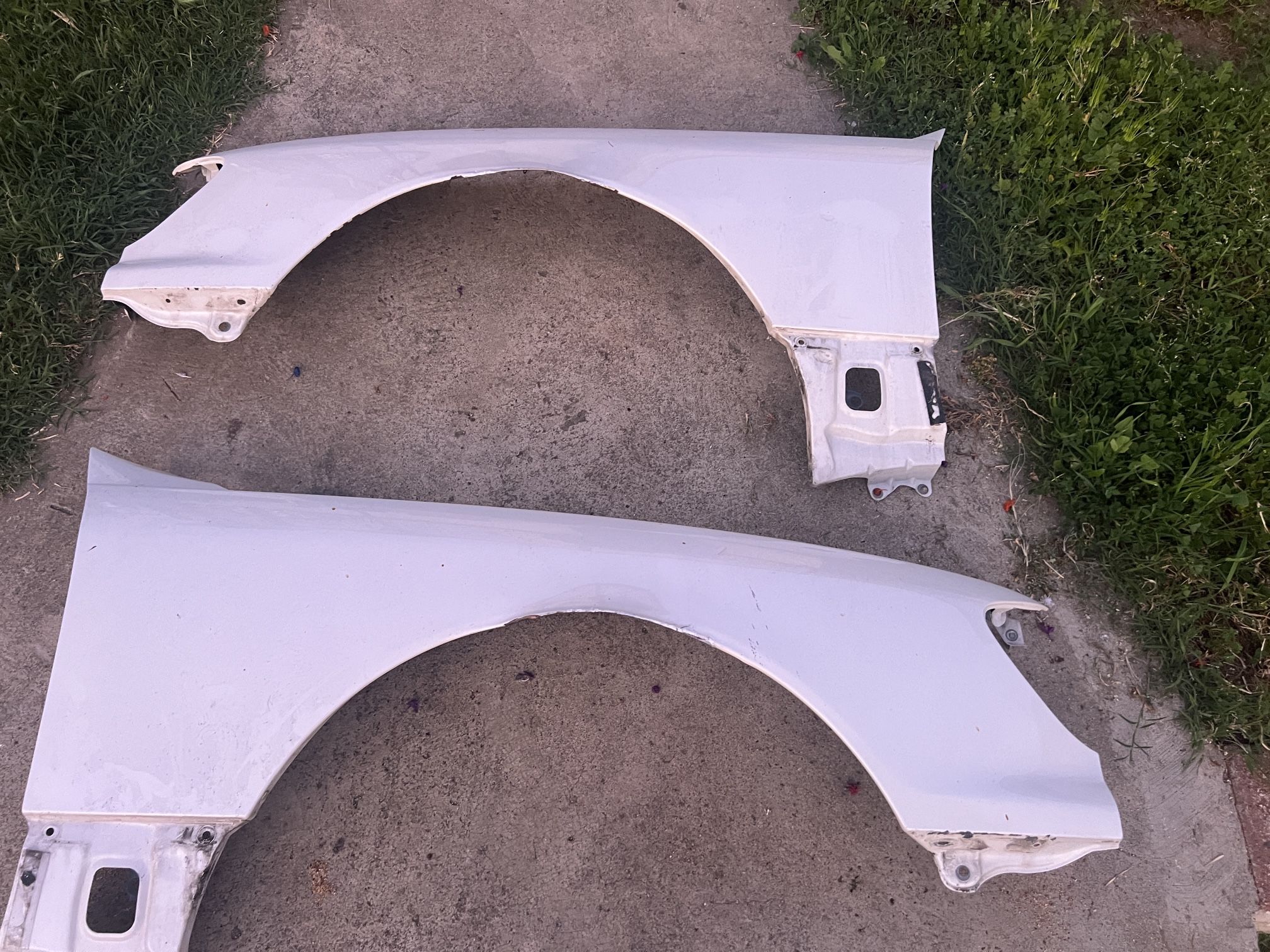 Pair of fenders in good condition not the best due to the edges being pulled a little from my wheels being to wide. But not too bad can be repaired or ran as is.