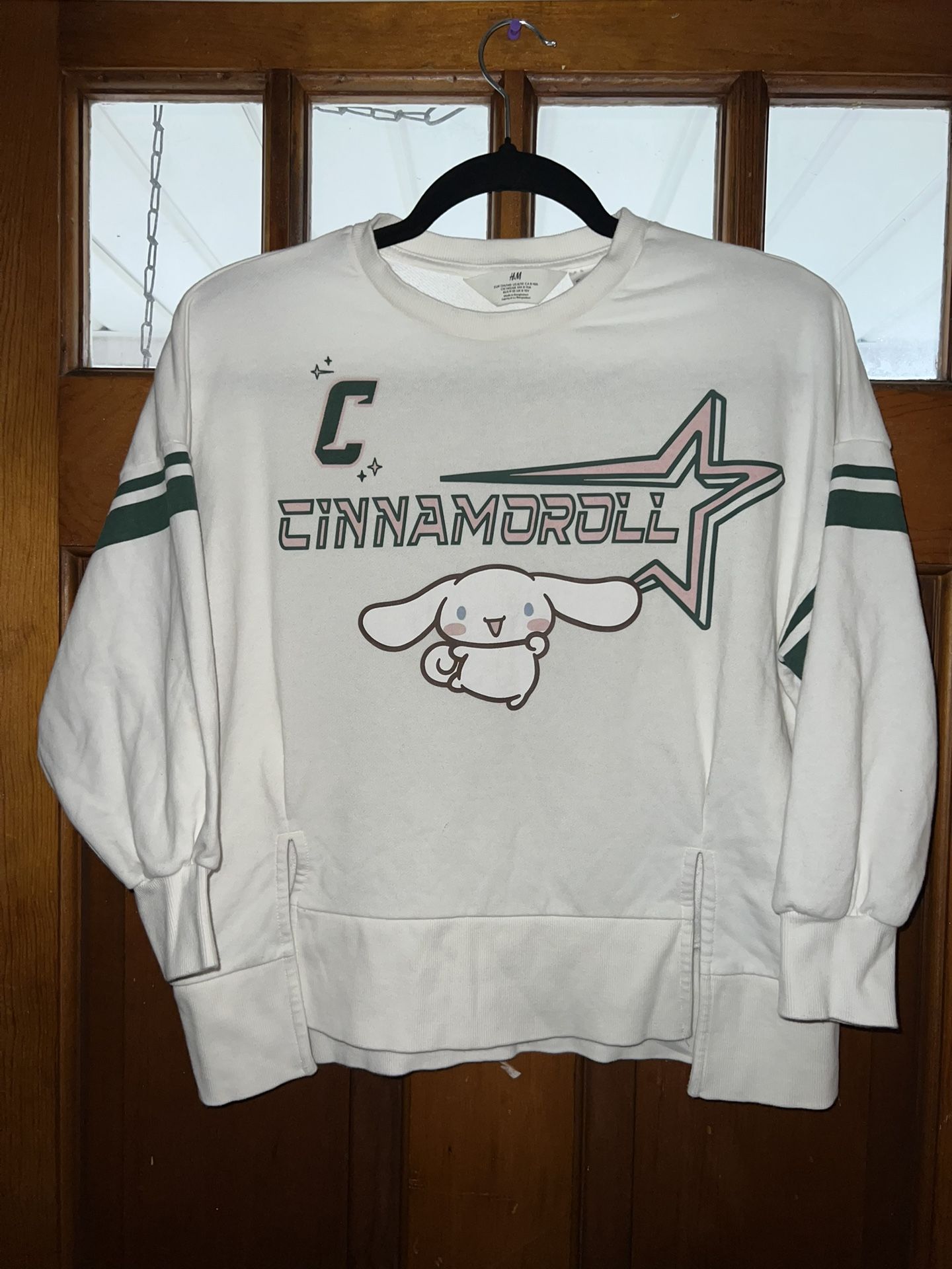 HM Sanrio Womens Cinnamoroll Graphic Crop Sweatshirt Varisty Stripes Size 8