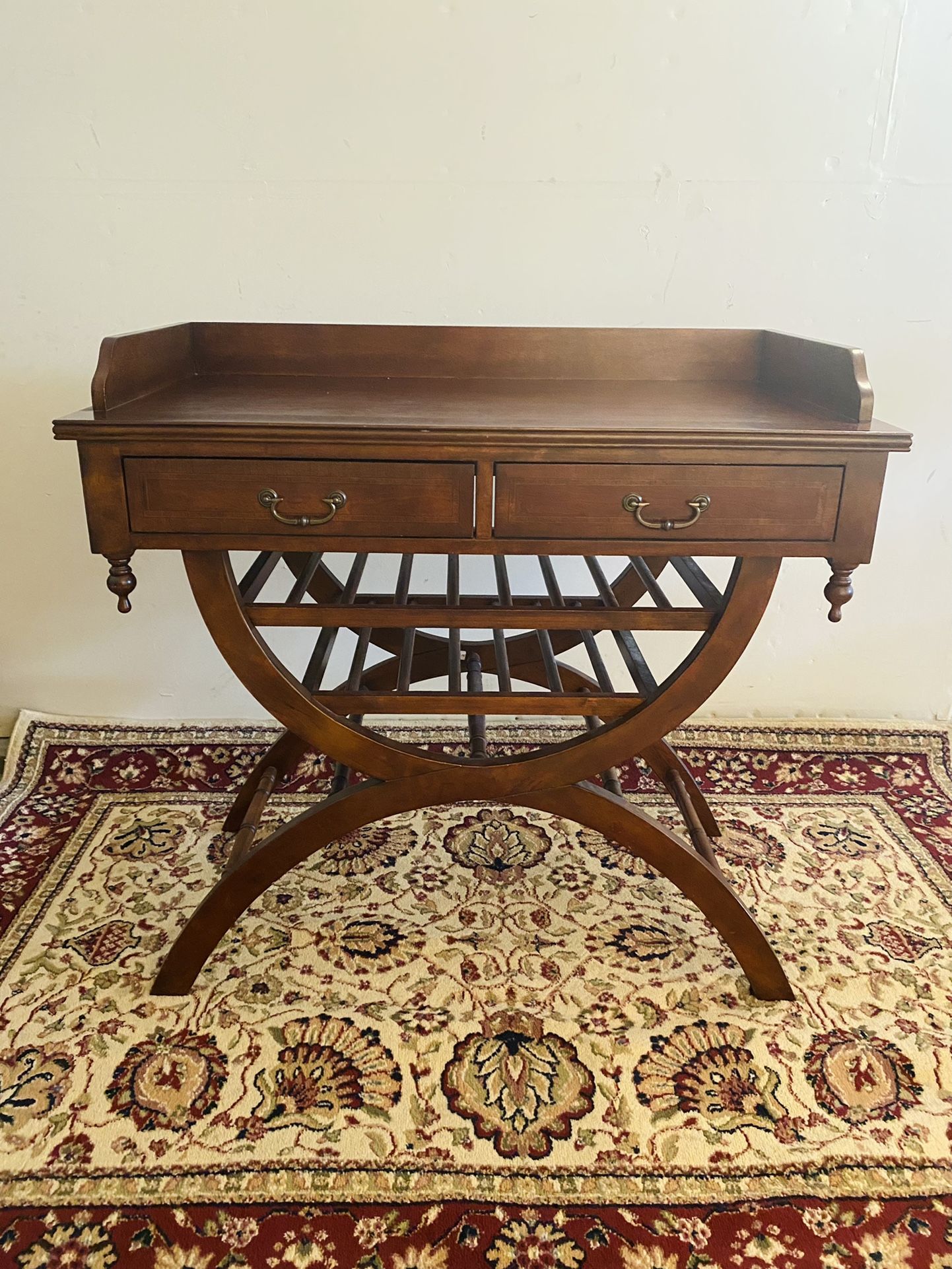 Mid Century Antique Bar Writing Desk Console Table Wine Rack 2 Drawers Solid wood