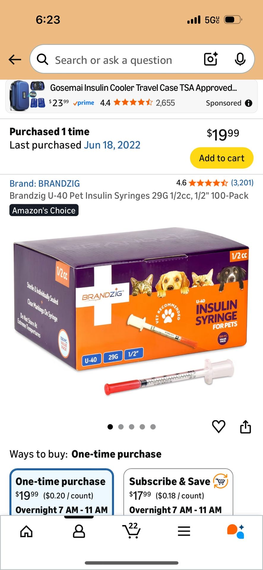 Brandzig U-40 Pet Insulin Syringes 29G 1/2cc, 1/2" 100-Pack