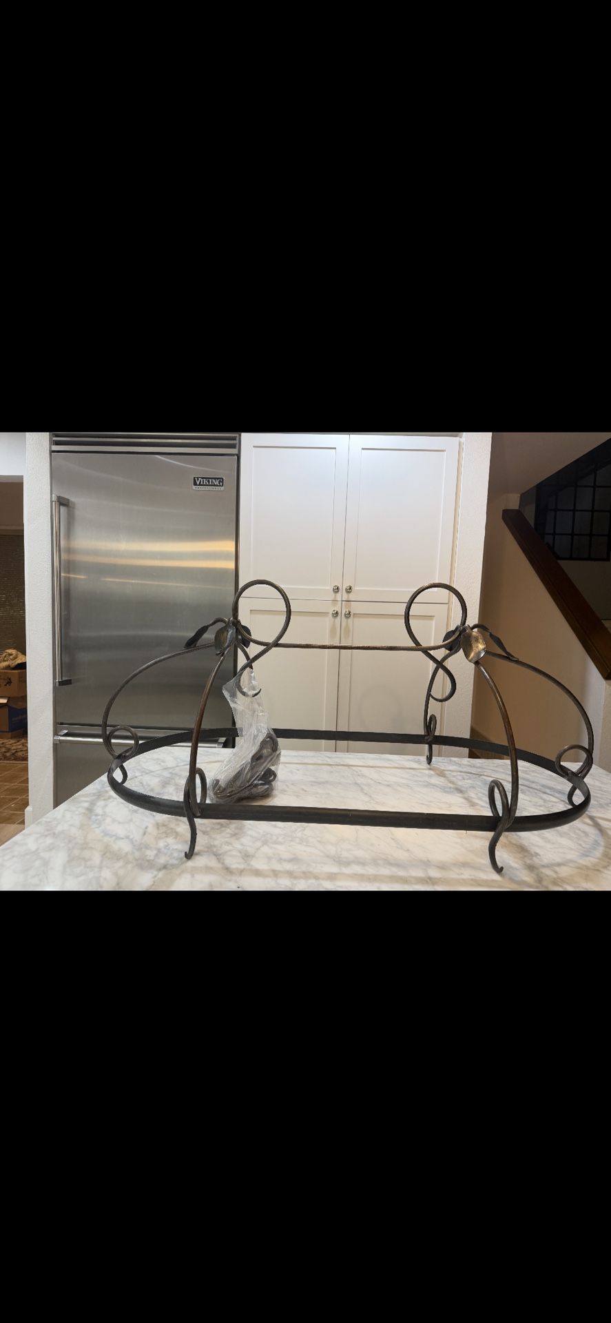 Rod iron pot rack 38 inches wide by 17 1/2 inches tall no chain