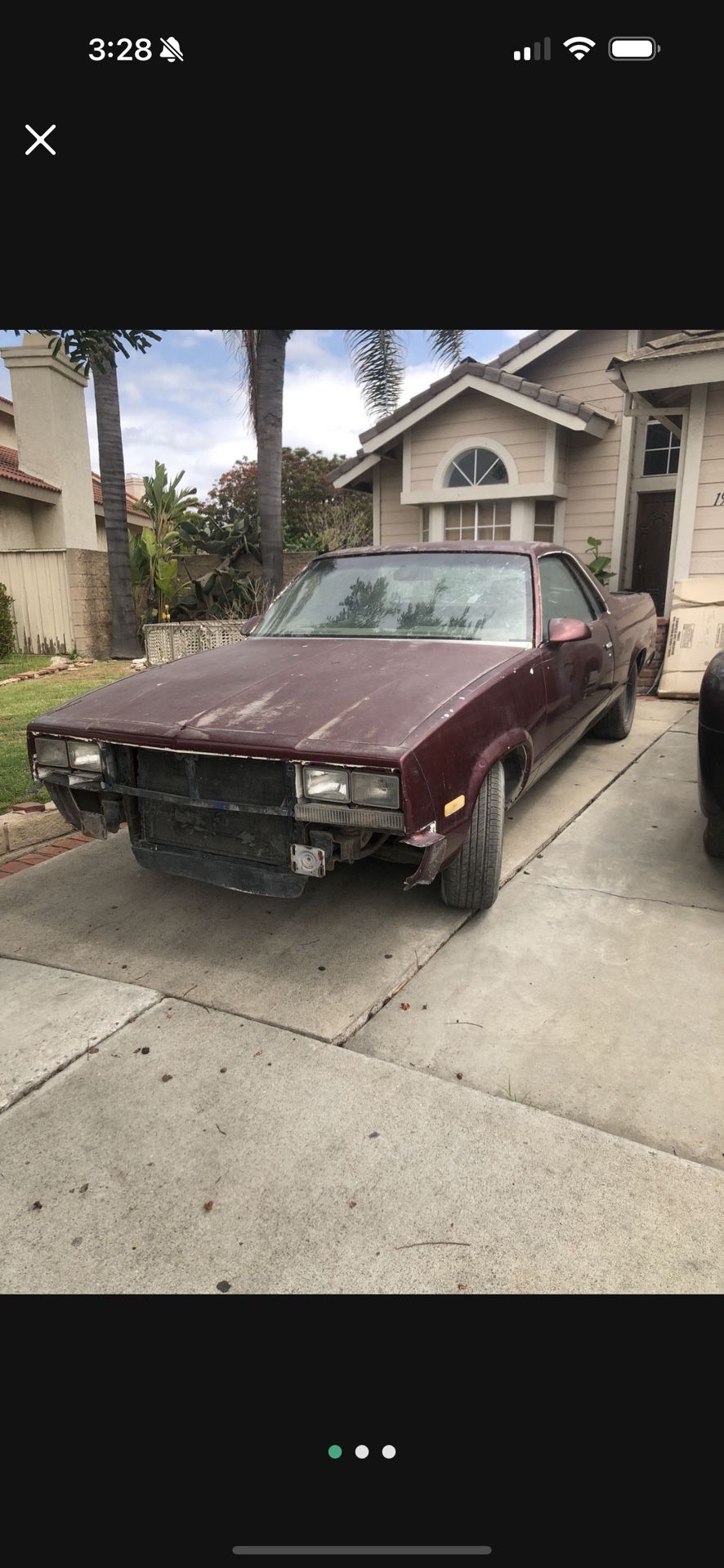 Selling a project el Camino 87 very good body frame and great engine 350 cubic in , looking to sell fast . Have all the parts like bumpers and grill except for the chrome molding that go around the bed and the front n back windows but those can easily be found