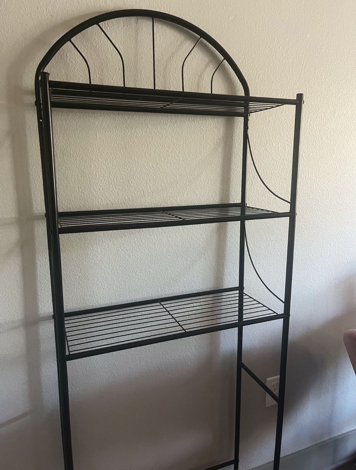Lightweight freestanding shelf with three tiers about 5'5" tall 24" wide 9" deep. Available today SDSU area! tags: shelf, shelves, shelving, storage, display, bookshelf, multi-tiered