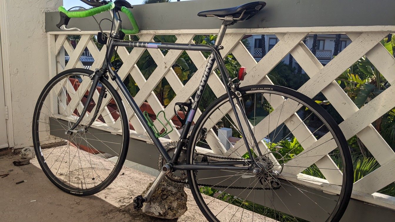 This is a rare late 80's chome-moly machine! I love this bike, but don't have room for it anymore. This bike had been modified for triathlons but is still a blast for standard road runs. The gearing will have you dominating the flats. Light and strong tube construction offers smooth rides with minimal flex. Bike needs a little cleaning up but otherwise ready to ride.
