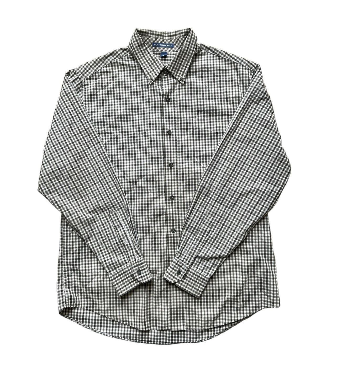 Men’s Size Large Plaid Button Down Shirt Gray Port Authority