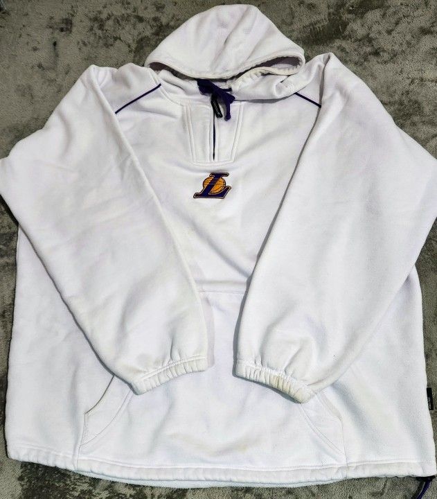 LA-Lakers Hoodie / Sweat Shirt • NBA- FUSION • STYLE: 8008A • Size:4-XL • 2-Front Pockets • 1/2-Front Short Zipper • Hoodie Draw String • This Hoodie Is Pre-Owned So There are A Few Yellow Minor Faint Stains Shown In The Photos Highlited. W-5