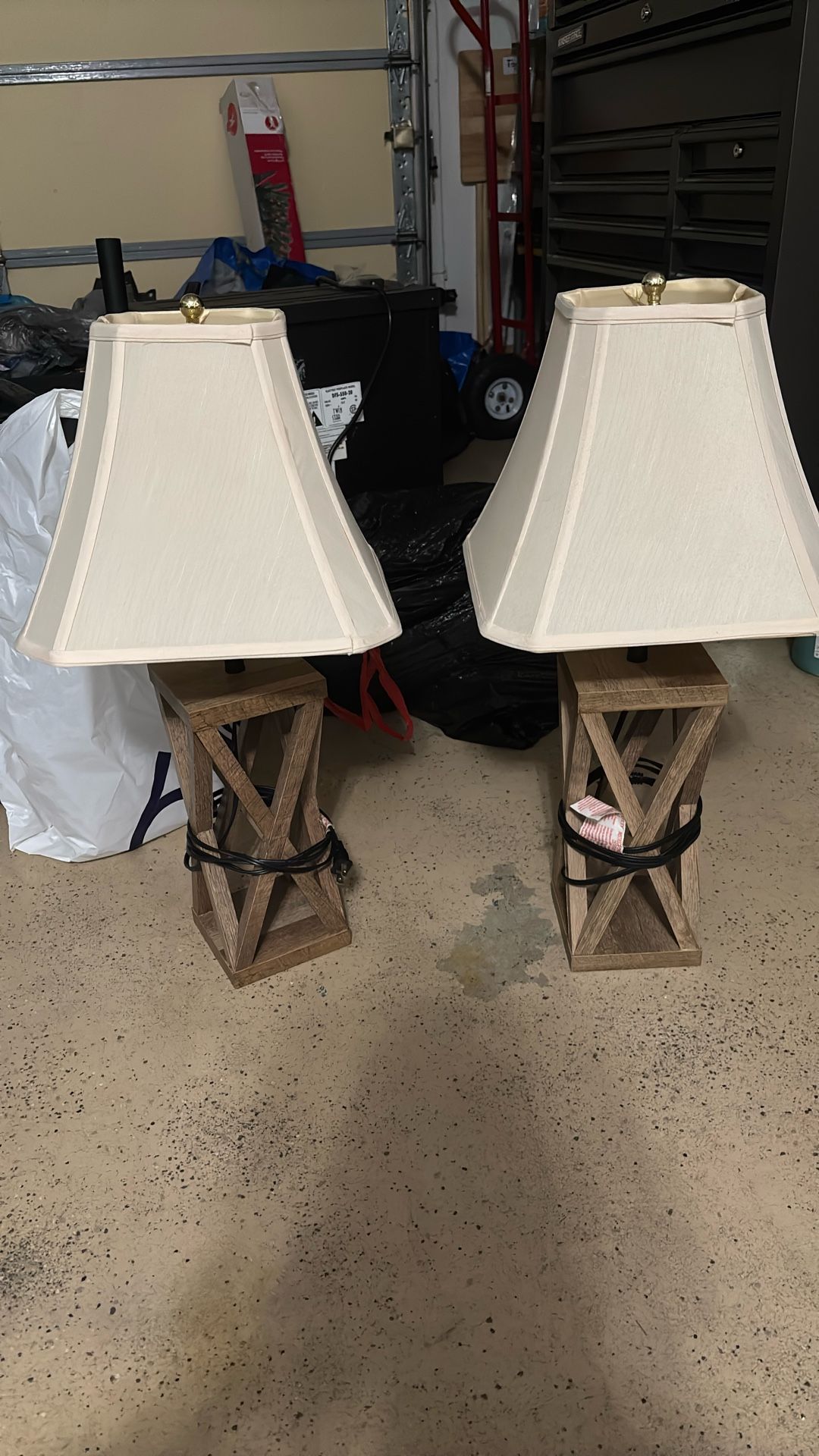 Two wooden table lamps. Nothing wrong with them . Lamp shade our new