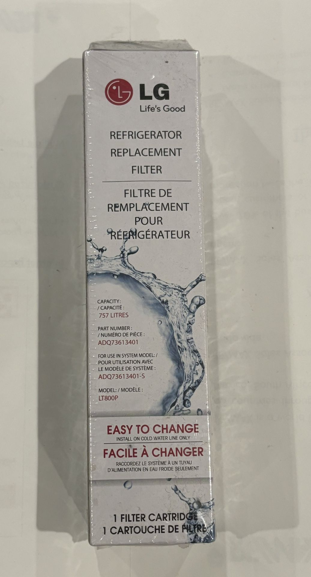 Part number ADQ(contact info removed)1. For use in system model ADQ(contact info removed)1-S. Brand new in sealed box. Upgrade your refrigerator with the LG LT800P replacement filter, ensuring you always have clean and refreshing water. Designed specifically for LG refrigerators, this filter is the perfect fit for your water purification needs. With its superior filtration system, you can rest assured that your drinking water is always safe and healthy. This replacement filter is compatible with selected LG refrigerator models, including those listed in the aspects section. It is a must-have for anyone looking to maintain the quality of their drinking water. Purchase now and enjoy the benefits of having a reliable and efficient filtration system in your home.