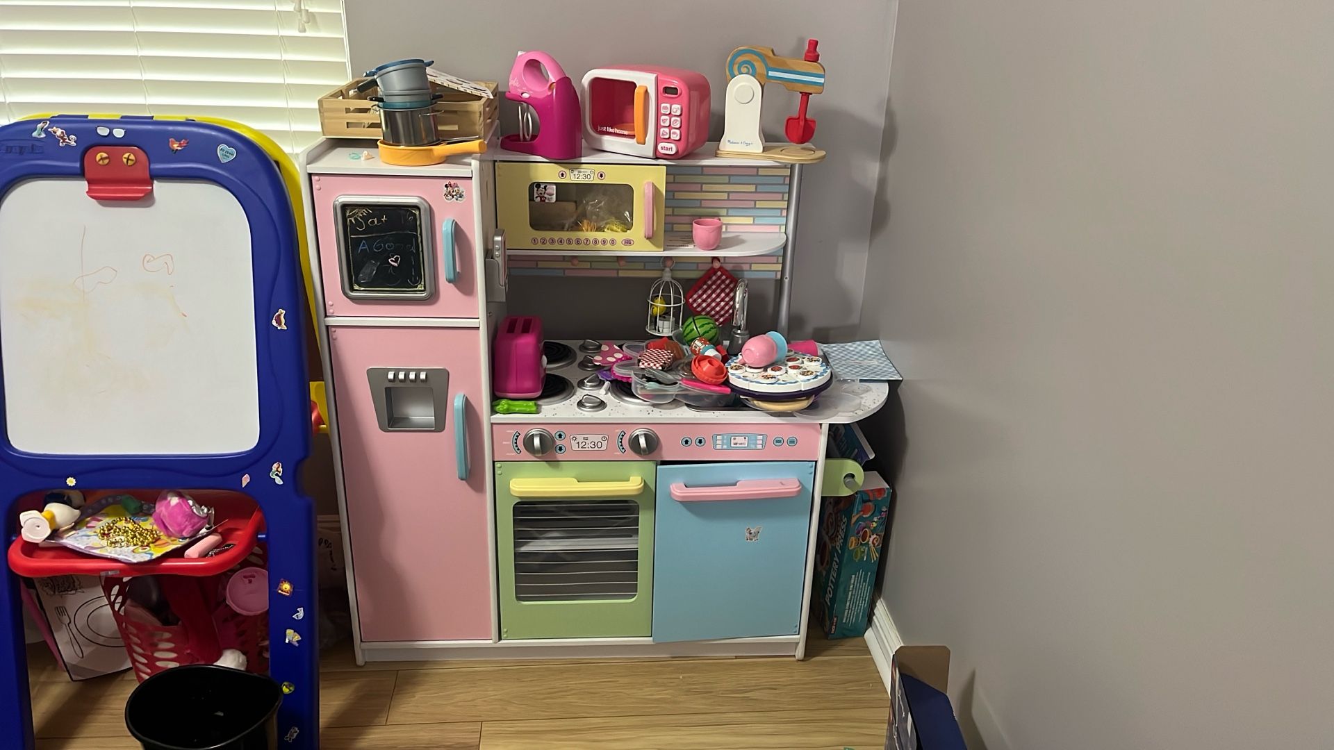 Girl Kitchen With Food And Kitchen Appliances
