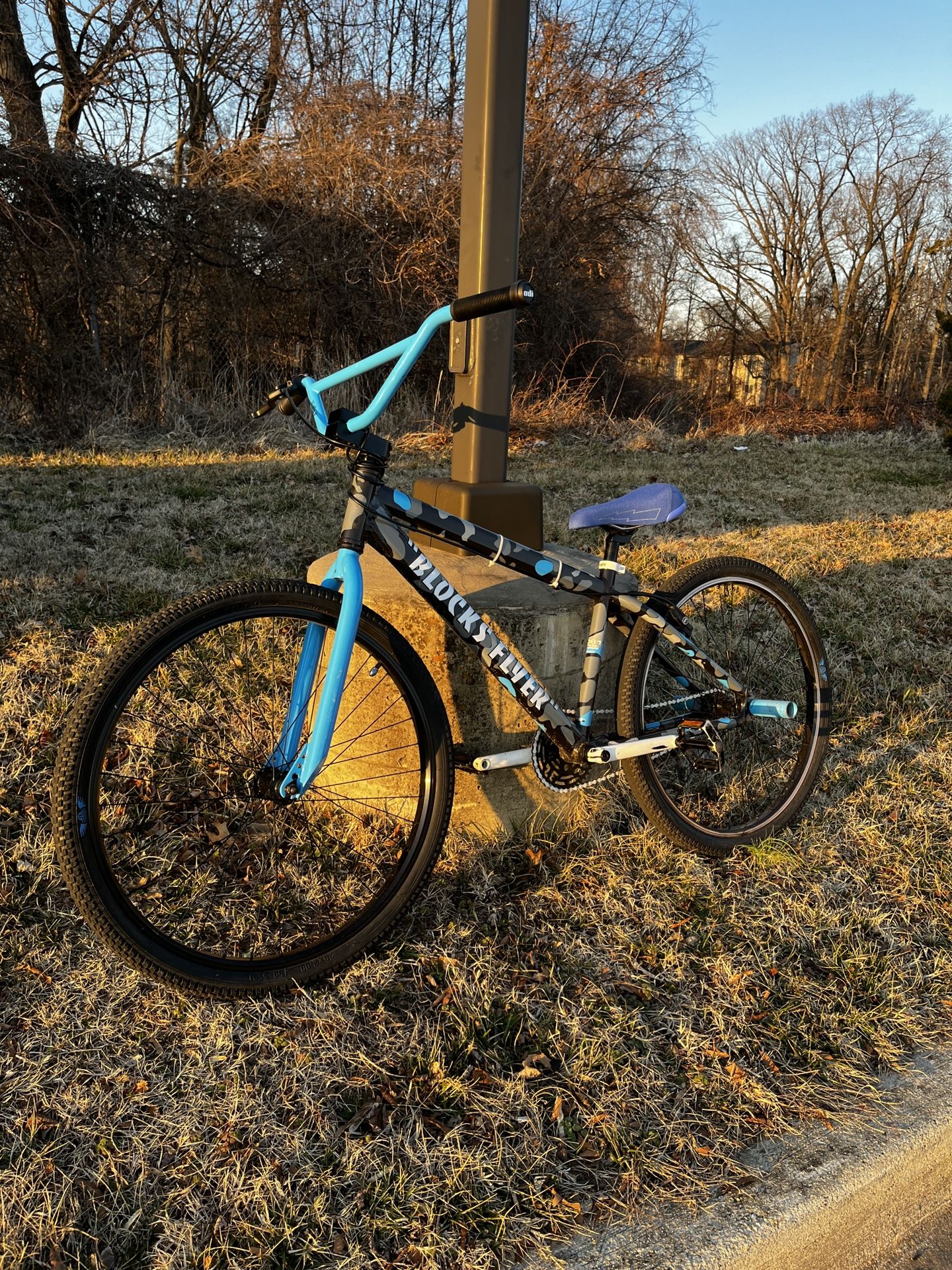 Blue Camo Blocks Flyer. Rides like new with no issues. After market HS 33 Magura hydraulic brakes installed(Value $100). Brand new ODI longneck grips. Tires are slightly used. Go ahead and give me an offer or trade!