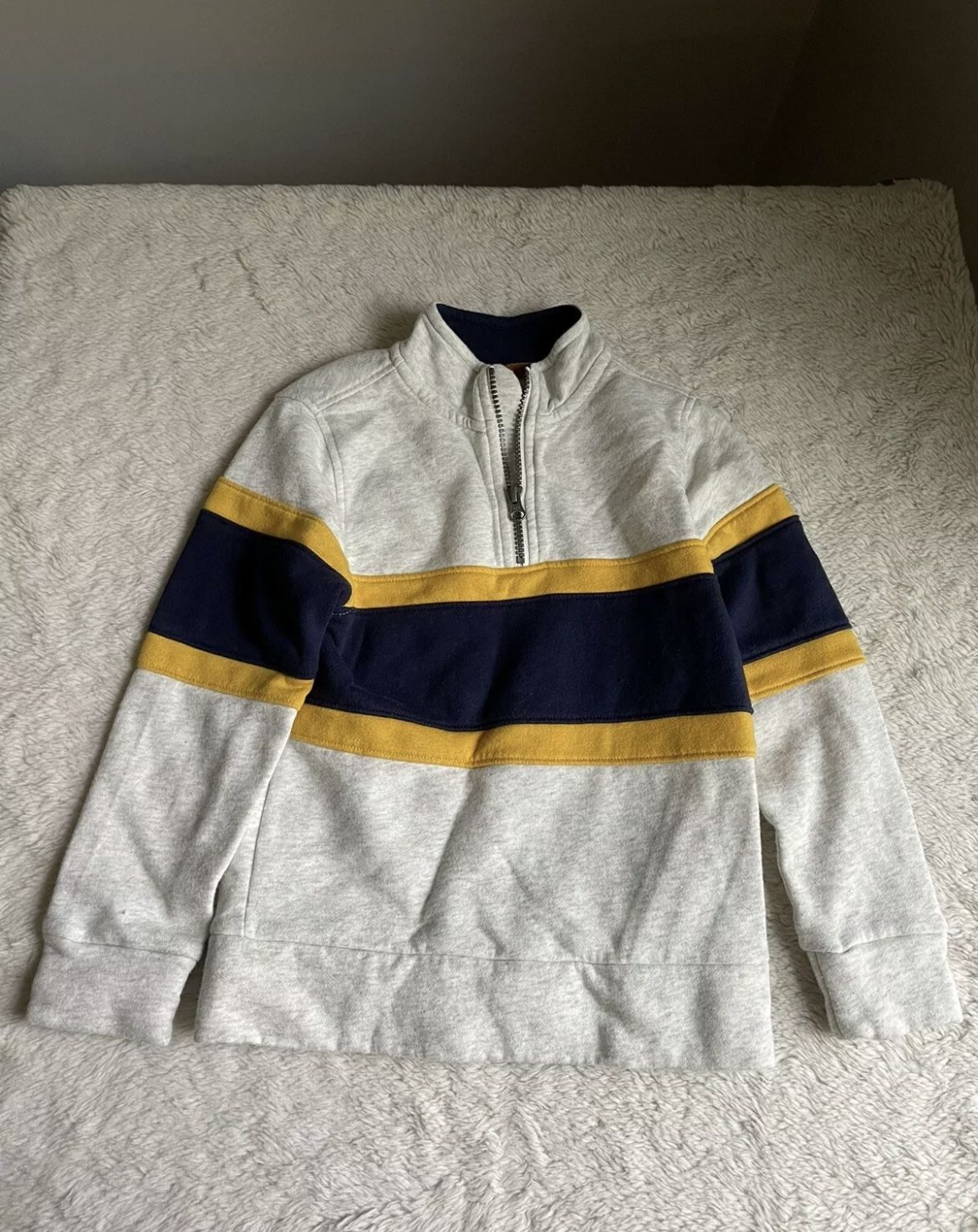 Old Navy Boys S 6/7 1/4 zip Pullover Sweatshirt Navy Stripe Rugby Preppy Soft!