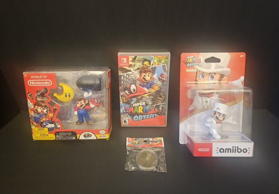 **BRAND NEW AND FACTORY SEALED** -SUPER MARIO ODYSSEY BUNDLE FOR THE NINTENDO SWITCH (COMPATIBLE WITH THE SWITCH 2) BUNDLE INCLUDES: "SUPER MARIO ODYSSEY" VIDEO GAME FOR THE NINTENDO SWITCH "SUPER MARIO ODYSSEY" MARIO AMIIBO "WORLD OF NINTENDO" JAKKS SUPER MARIO ODYSSEY FIGURE SET "SUPER MARIO ODYSSEY" DOUBLE-SIDED GOLD COIN" **Cash Only** Meet Up: Hillside, NJ - Hillside Police Department