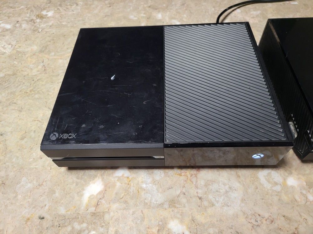 Two x box one consoles. One power brick. Had 2 but one of stopped working suddenly. Both consoles work. The brick and HDMI cables can be purchased online. No controllers. Any xbox controllers work. I paired my new xbox series X controller to these in order to reset them.