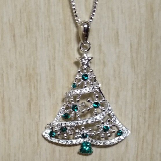 Up for sale is this new in box super cute stamped 925 solid sterling silver pendant made up of Swarovski Crystal Emerald colored elements on an 18-in stamped 925 solid sterling silver chain. This is very festive and adorable for the holiday Christmas season. From our smoke-free home.