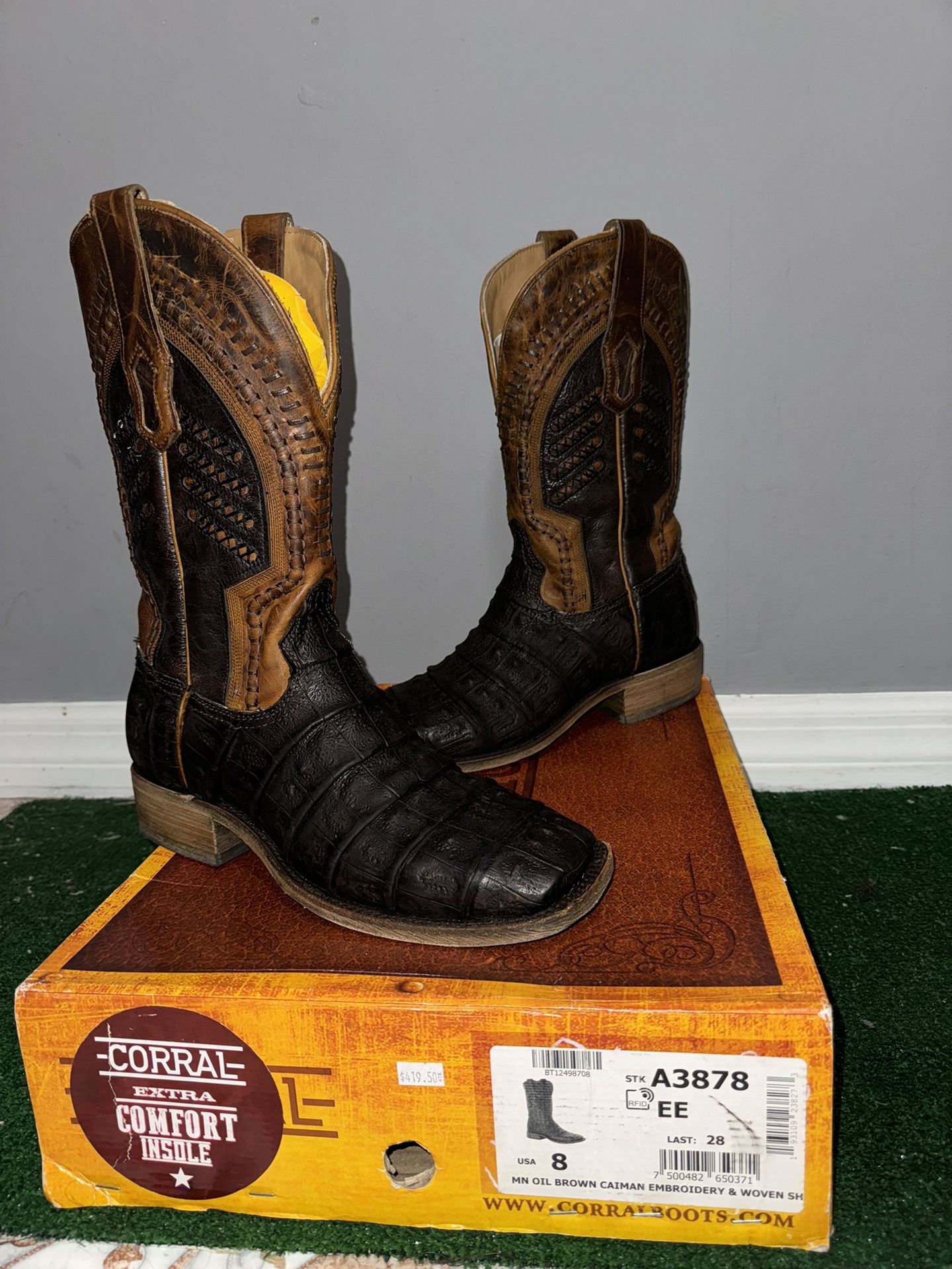Selling square toe caiman boots, size 8, worn them only once and still in good condition, willing to negotiate on the price, need gone!