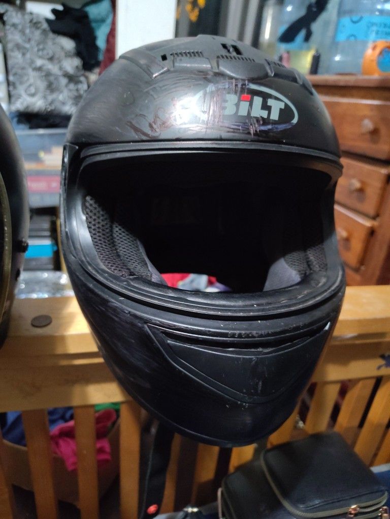 Three helmets total one Bell black medium when b i l t black medium and a large white gringo