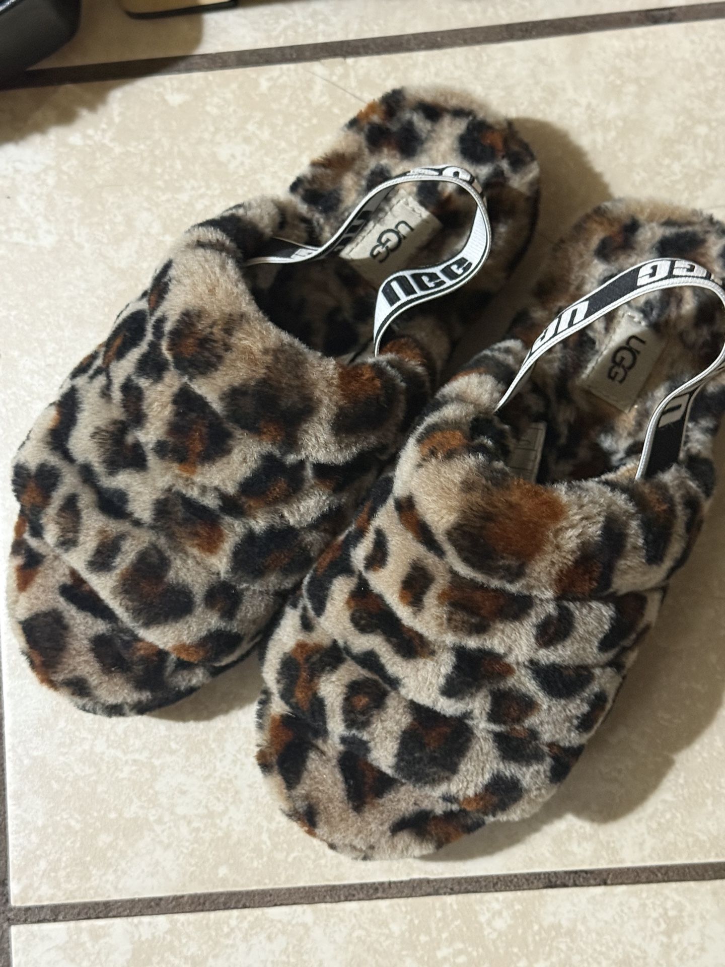 Authentic Cheetah UGG slippers with strap. Only worn twice. Too small.