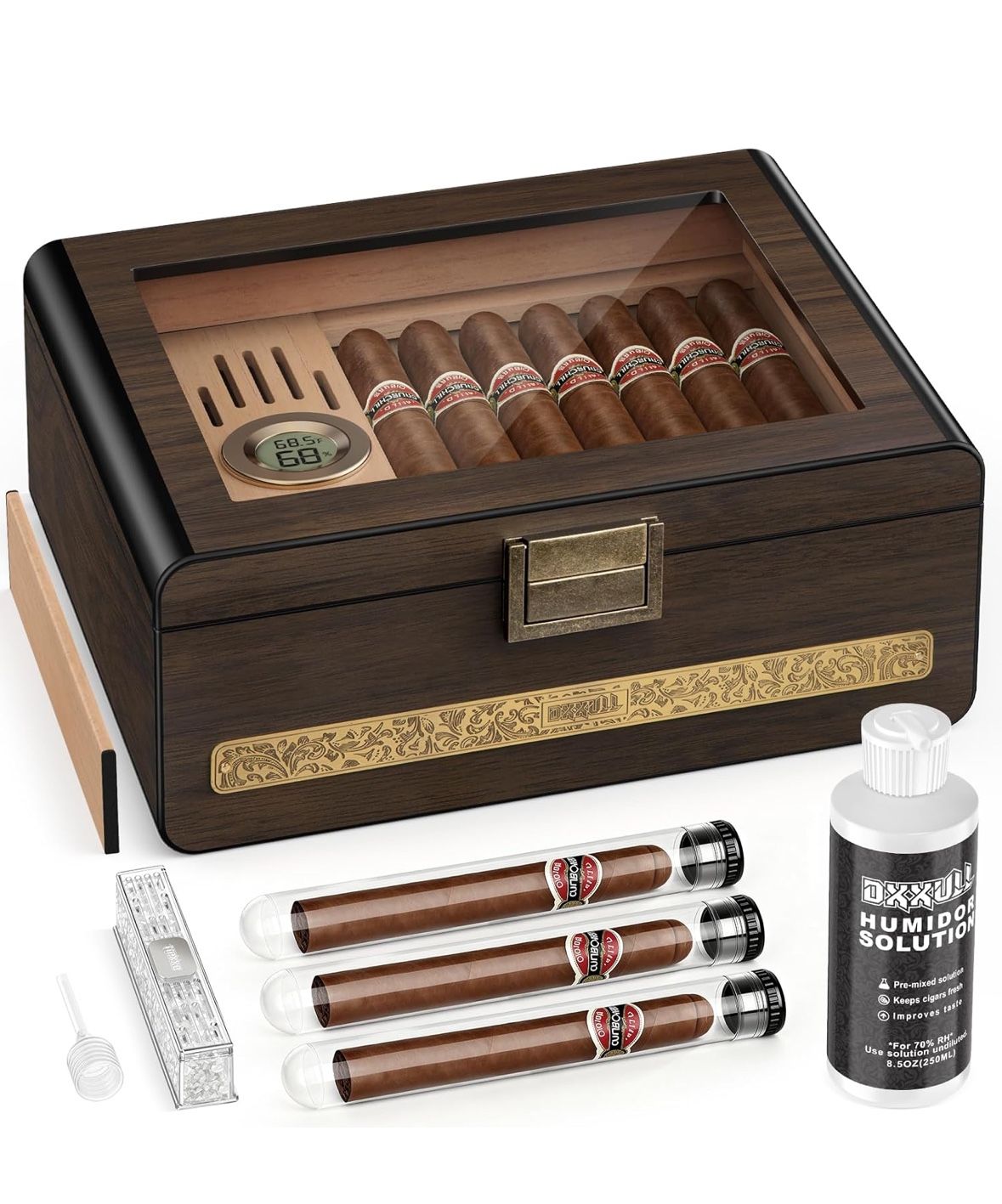 Cigar Humidor, Cedar Wood Humidor Cigar Box, Glass Top Desktop Cigar Case with Hygrometer, Humidifier, Divider, Dropper,Desktop Humidors with Sealed Freshness,25-35 cigars Humidor Gifts for Men