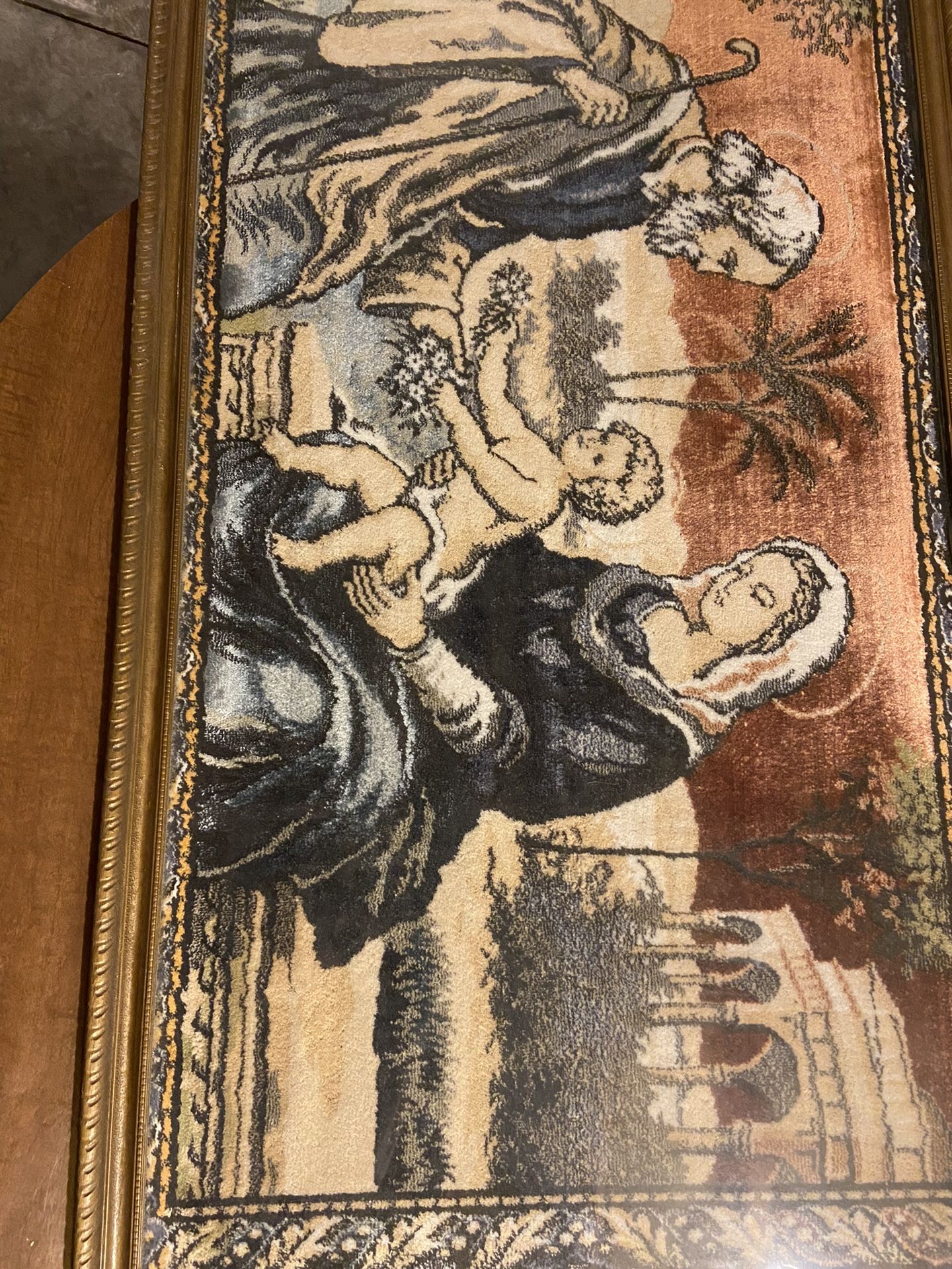 Vintage Framed Mary, Joseph And Jesus Tapestry.
