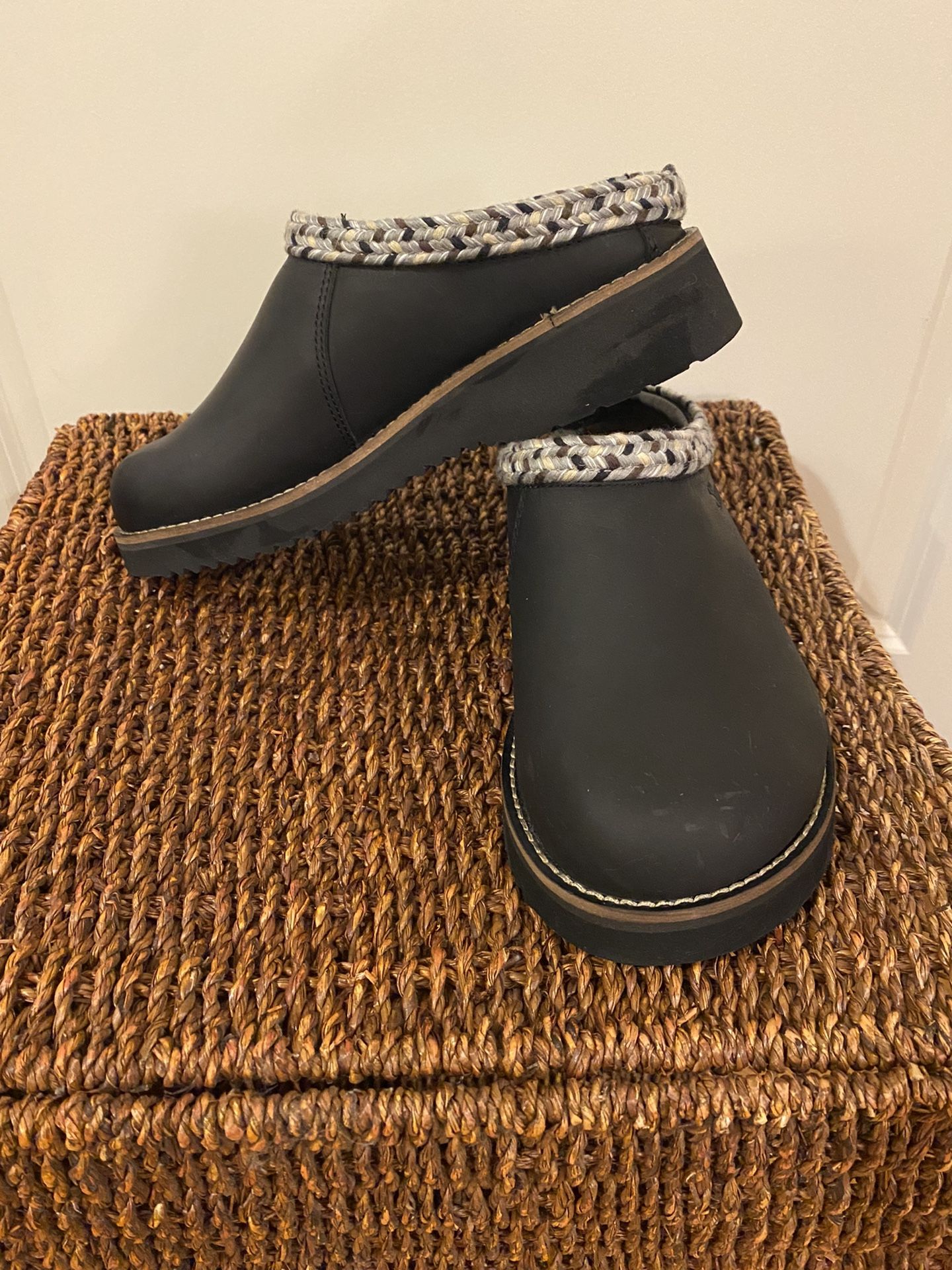 Women’s size 7; Mens size 5! Nearly brand new black slip ons with sturdy sole 😊 Brand: Simple Santa Barbara California. Message me today so I can send or drop them off to you today!