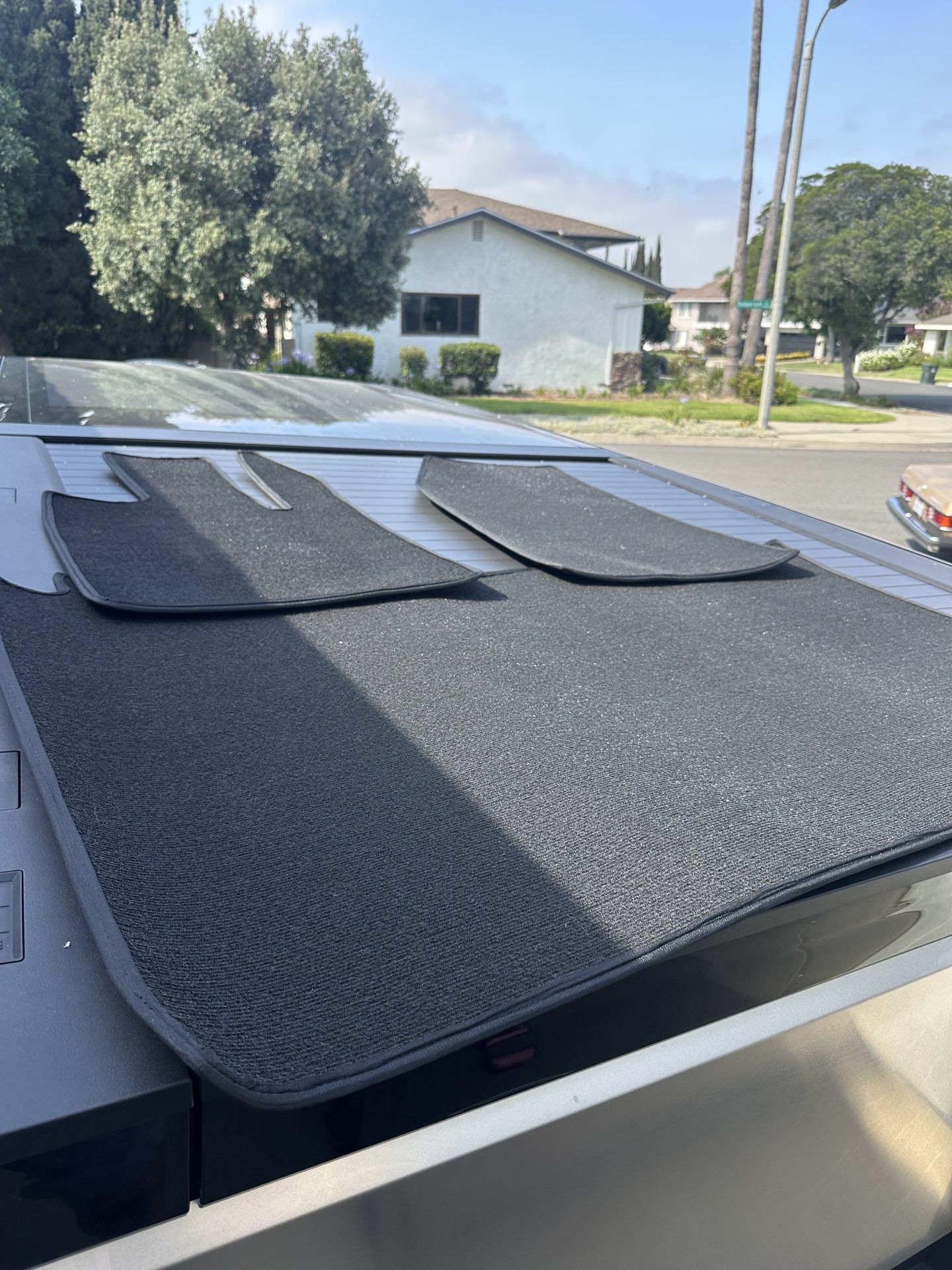 I bought the rubber flooring and took the own mats out the first week of owning the truck. No need to have them laying around. $75 and they are yours. On the Tesla site they are $155 plus tax. So you’re getting for 50% off.