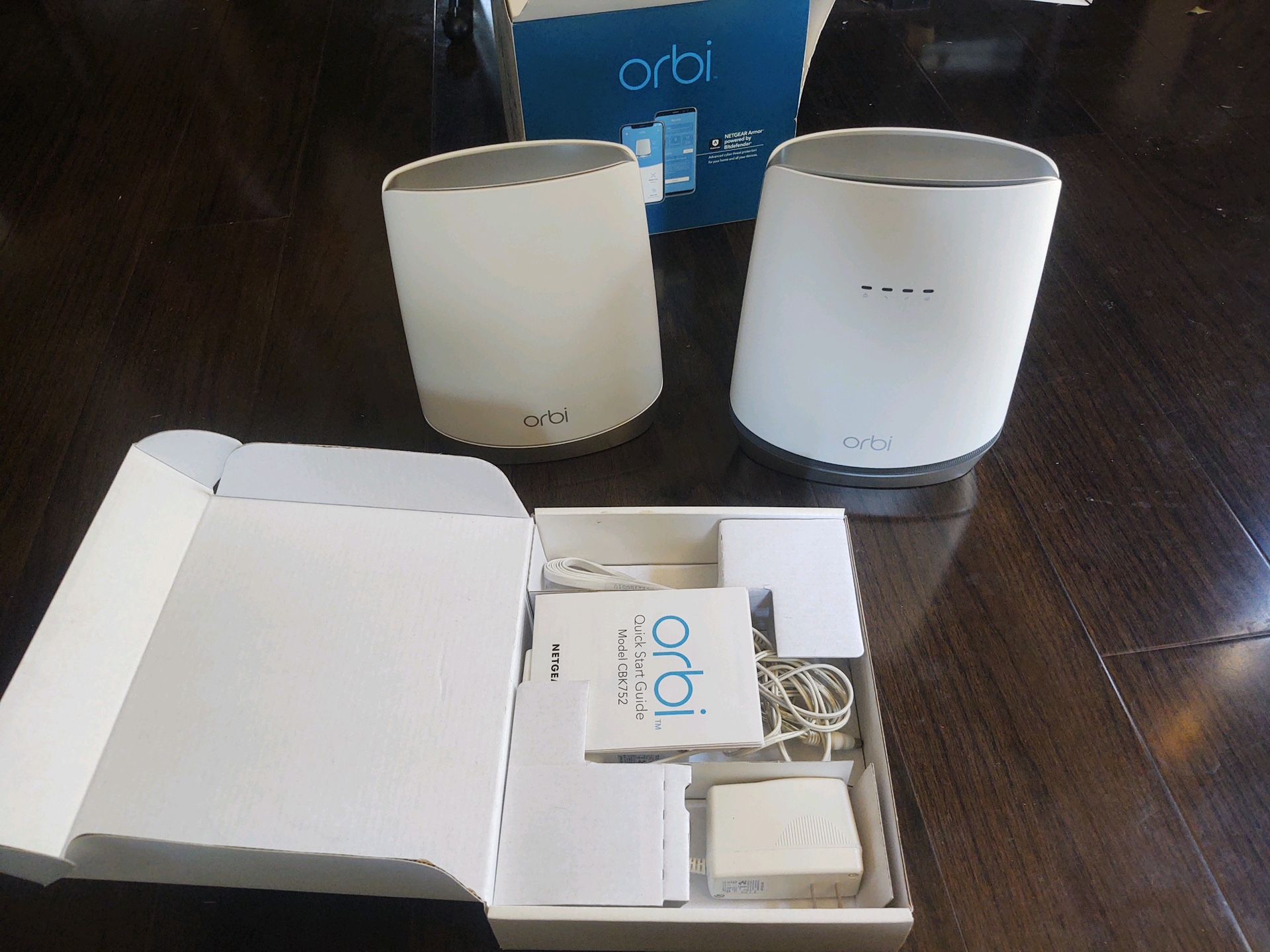 Orbi cbk752 cable modem/router/satellite combo. (Like New) This is a Orbi tri-band wifi 6 mesh cable modem/router with 1 satellite. Covers a very wide range. Only used for about 6 months. Excellent condition. Only missing the ethernet cable. It has been factory reset.