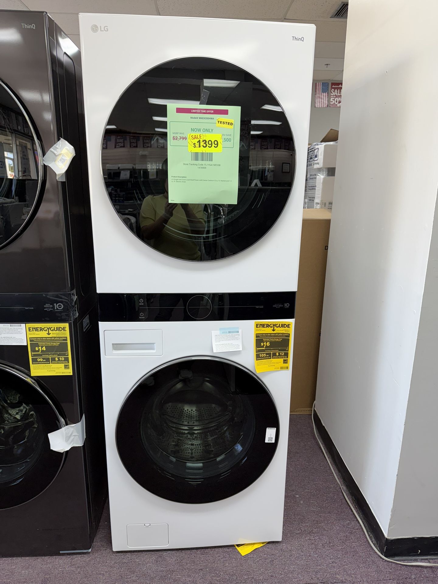 Product Description: LG Single Unit Front Load WashTower with Center Control 4.5 cu. ft. Washer and 7.4 cu. ft. Electric Dryer With 1 year warranty