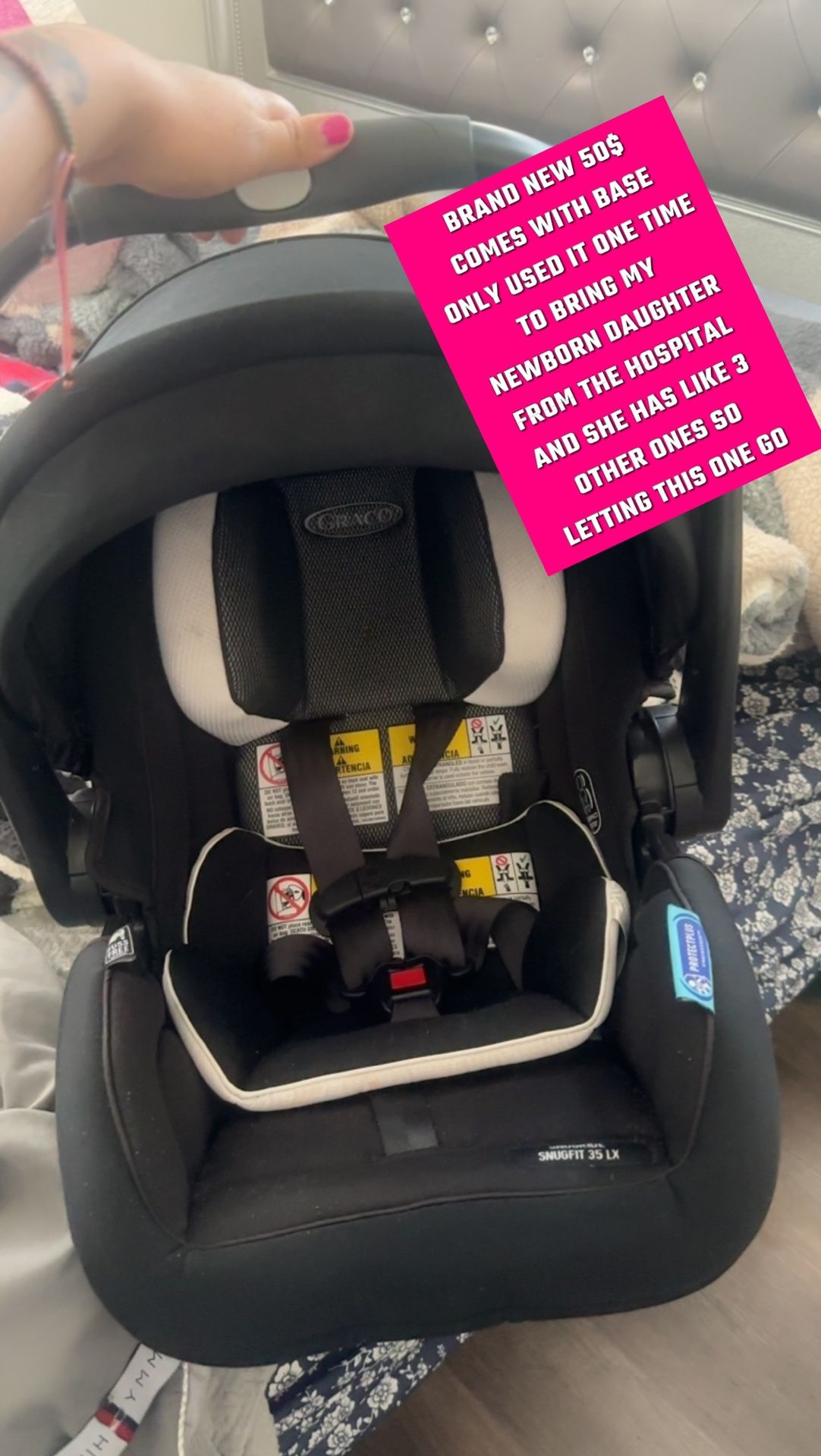 New only Used it once to bring my new born home Everything works fine but I have like 3 other car seats for her so this one is just sitting in my closet need space contact (contact info removed) for more info LOCAL PICKUP OR DELIVERY ONLY NO SHIPPING !!! Still available !!!