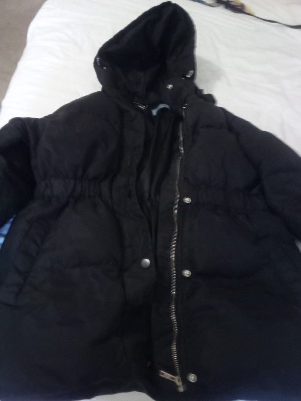 Authentic Prada goose feathered women's medium black jacket with hood. Good condition