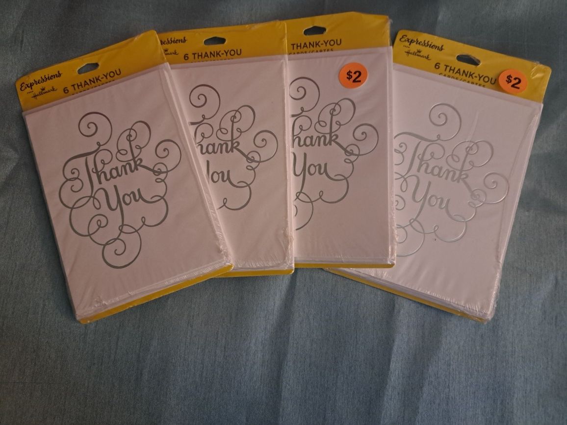 4 packs of Thank You cards never opened. Each pack brings 6 cards, a total of 24 cards for $8