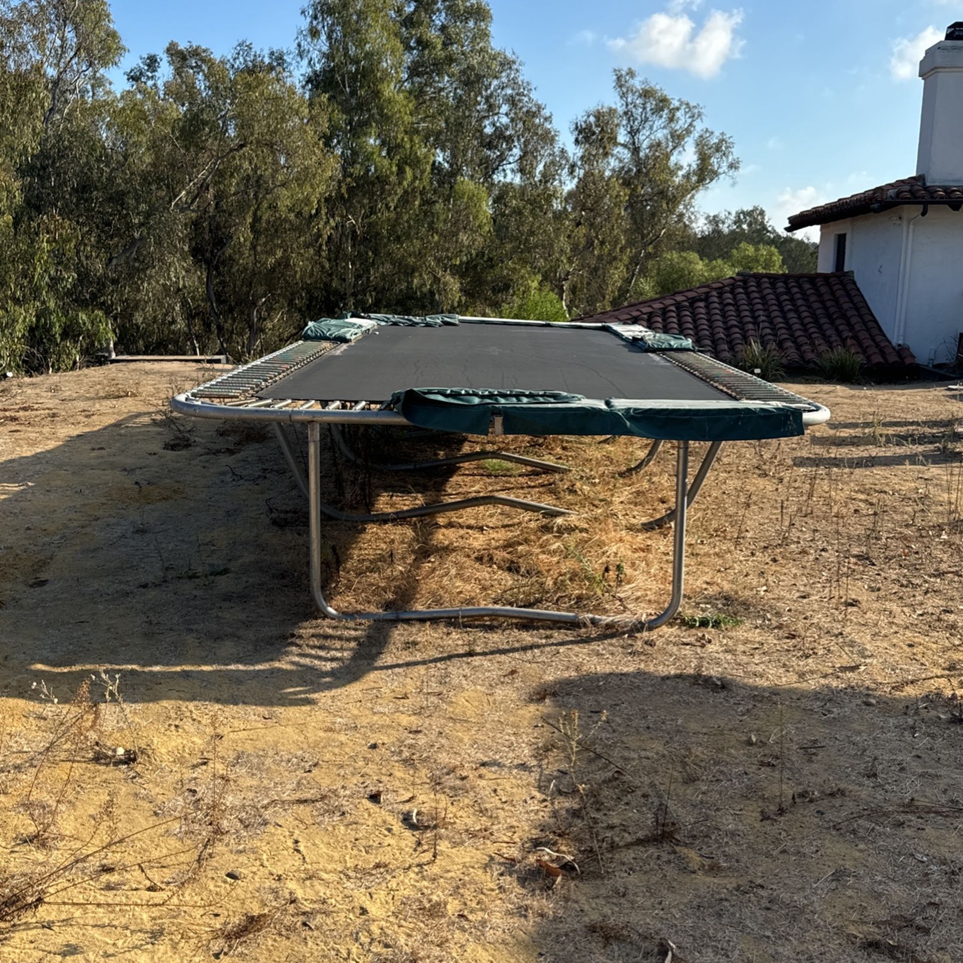 22 and a half ft. long 9 in a half ft width. No side wall and saftey padding is worn down . Purchased for 3300. Asking 350. Must take apart.