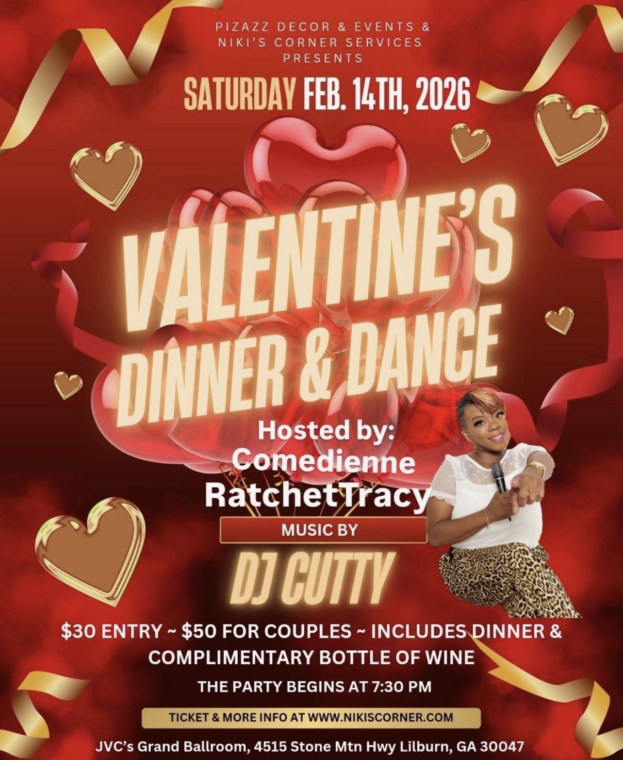 A Night of Romance & Laughter Valentine's Day Dinner & Dance featuring live comedy entertainment. Your ticket includes parking, dinner, and an unforgettable night of fun.