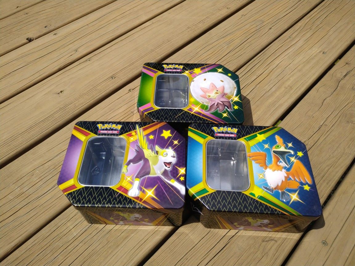 For sale are Pokemon Shining Fates Tins, all 3 different variants are available (check photos) These are empty tins, so no cards or promos available... just the tins and the clear plastic inserts. 5 dollars a piece or 12$ for all 3