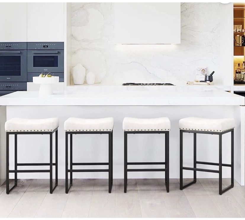 LUE BONA four Bar Stools with Height of 24" Counter and Seat, Modern Synthetic Leather, for Kitchen, White color